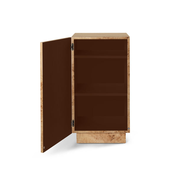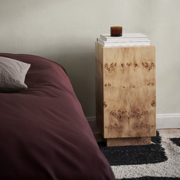 The Burl Tall Side Table from Ferm Living is more than just a piece of furniture – it's a functional and elegant addition to any space. Made of FSC™ certified burl wood, it offers both hidden storage and versatile use as a nightstand or side table. The adjustable shelf provides customizable storage while the pedestal-like design adds a touch of sophistication.