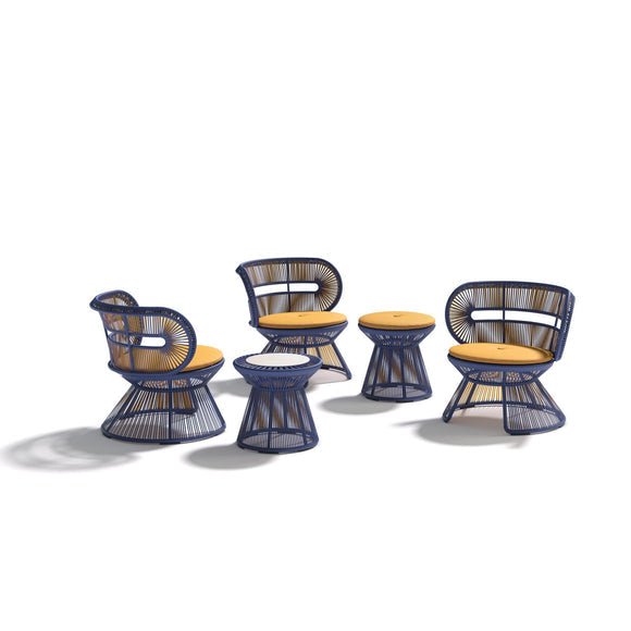 The CIRQL NU Footstool is the next evolution of the Dedon collection, combining striking colorways and textures through co-extrusion for a unique design. Created with invert fiber, it boasts an almost iridescent sheen that adds a touch of elegance to any space. Relax and enjoy paired with your favorite lounge seating for a cohesive outdoor entertainment space.
