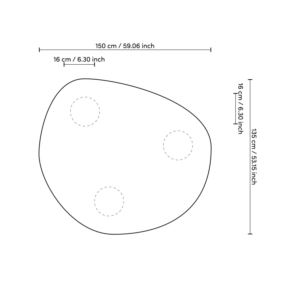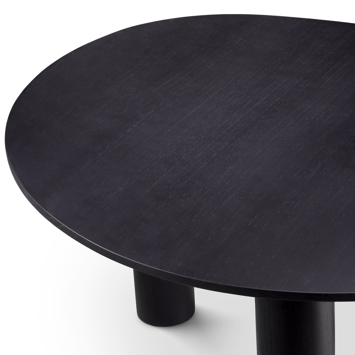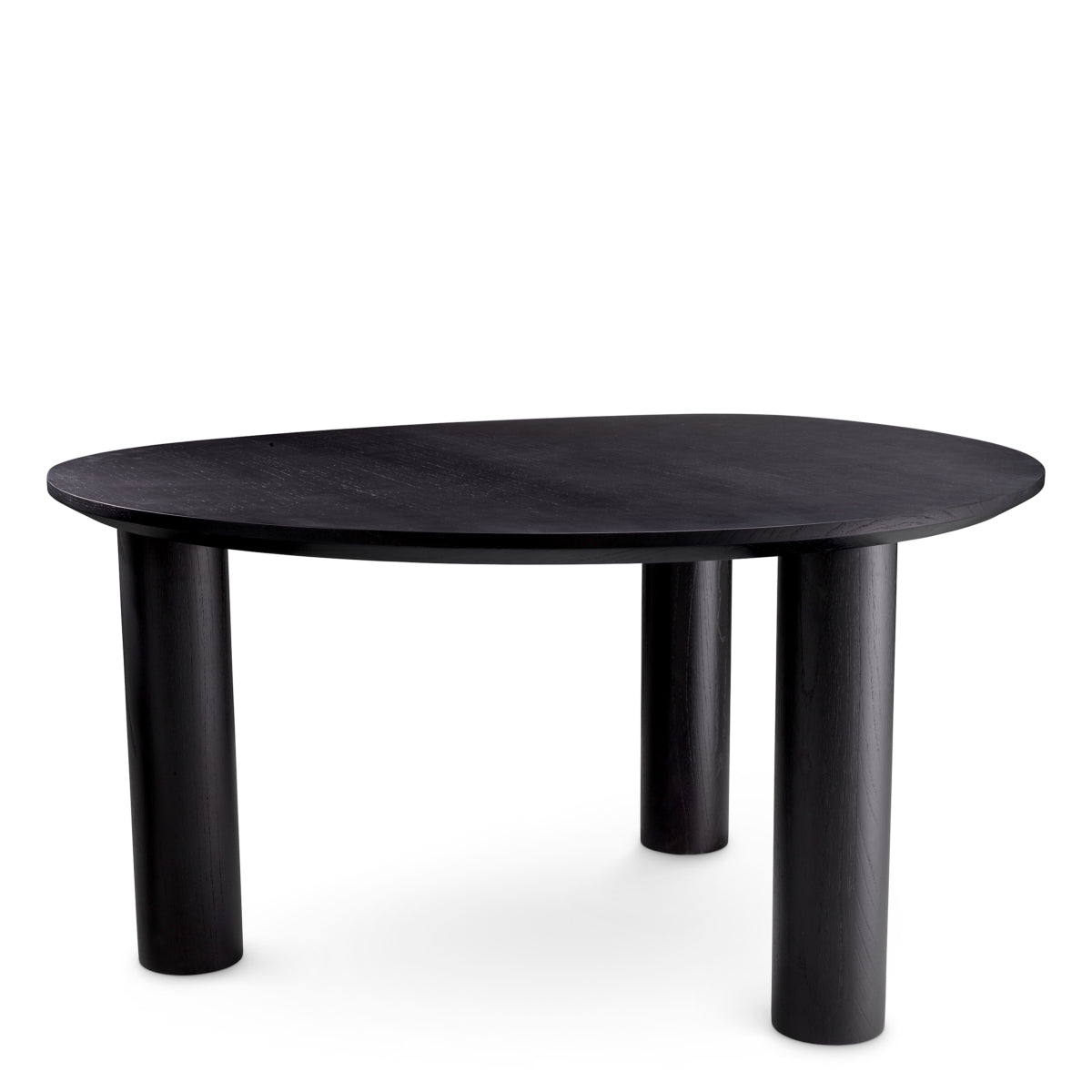 Crafted with meticulous attention to detail, this table features a sleek black veneer that exudes contemporary elegance. Its irregular shape adds a touch of uniqueness and versatility, making it a perfect fit for intimate dining areas. Embrace the charm of the Dining Table Lombardo where style meets practicality and every meal becomes a memorable occasion.L. 150 | W. 135 | H. 77 cm