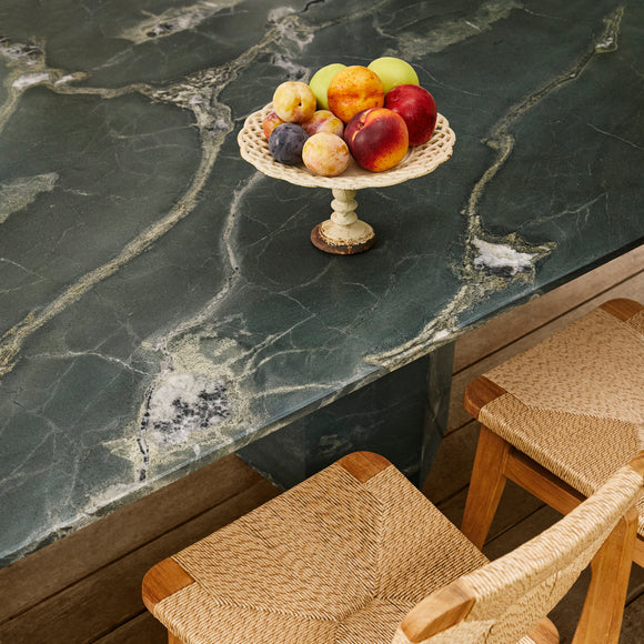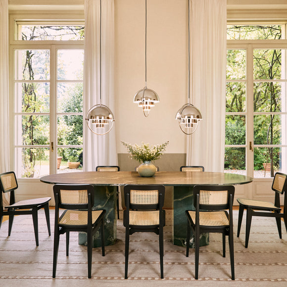 Elevate your outdoor dining experience with the Epic Elliptical Outdoor Dining Table from Gubi. Inspired by classical architecture, this table boasts a monolithic silhouette and is crafted from durable quartzite. Perfect for al fresco gatherings, it brings a touch of sophistication to your outdoor space.