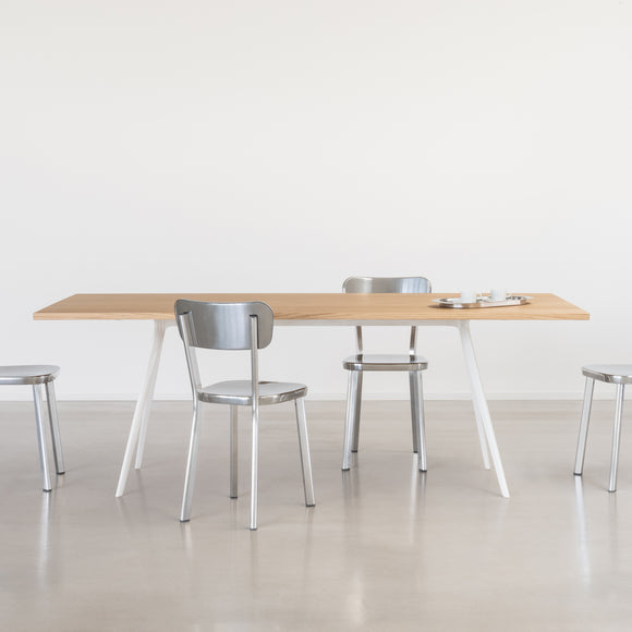 The Baguette Rectangular Table from Magis offers a sophisticated centerpiece for your favorite dining area. A sturdy wooden top rests atop a highly durable aluminum base, purposefully streamlined for a light, elegant appearance. Its thin, chopstick-like feet provide a visually stunning illusion of being suspended in air, while its spacious tabletop is versatile enough for any need or use.