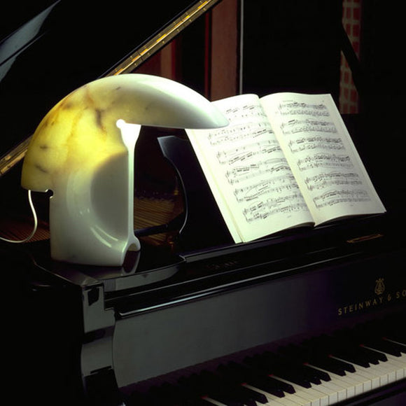 The Flos Biagio Table Lamp provides direct light. The lamp's body is carved from a single block of Botticino marble, resulting in a unique finish for each piece.