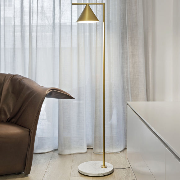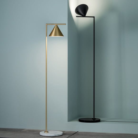 Offering elevated style and sleek details, the Captain Flint Floor Lamp from FLOS is a graceful and stylish addition to your living or office space. Designed by Michael Anastassiades, this floor lamp is crafted from aluminum, steel, polycarbonate, and features a natural marble base for sturdy placement throughout your home. The cone-shaped diffuser provides direct light that is on a rotating rod and can be adjusted and repositioned to fit your needs. Station in a corner of your favorite reading area or use as an accent light in an entryway or dark corner of your home.
