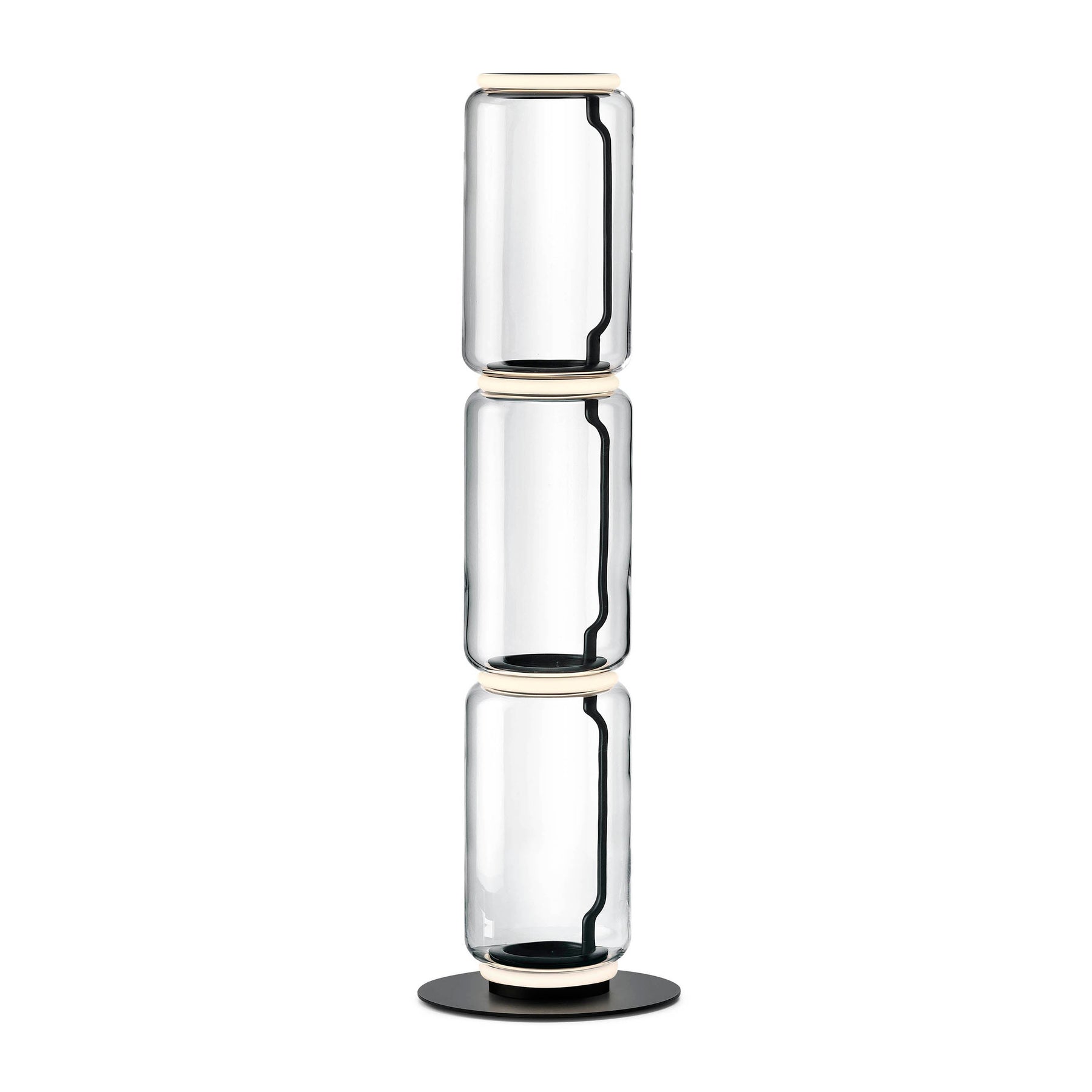 Noctambule LED dimmable floor lamp short cylinders with small base is a flamboyant-yet-functional lighting fixture crafted by the world-class designer Konstantin Grcic for FLOS. An innovative lamp that is practical and exquisite in equal measure, the product is available in an array of interesting designs. One of the highlighting aspects of this fixture is that it is very dynamic in nature. The lighting system has a transparent hand-blown glass cylinder as its foundation, which is surrounded on top and at the bottom by LED technology.