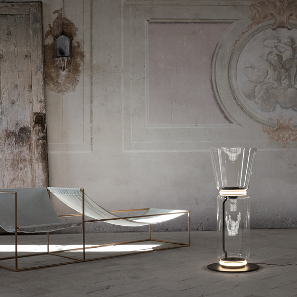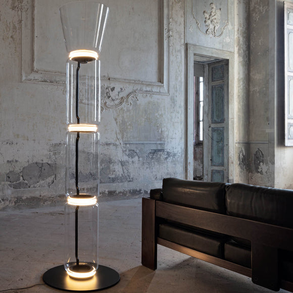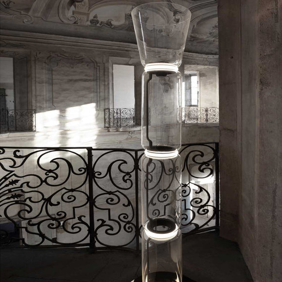Experience the future of lighting with Noctambule Cone Floor Lamp by FLOS. Designed by Konstantin Grcic, this innovative lamp features a transparent hand-blown glass cylinder which is accented by discreet LED technology. Elegantly modular, you can create unique columns of light at varying heights for a stunning lighting display.
