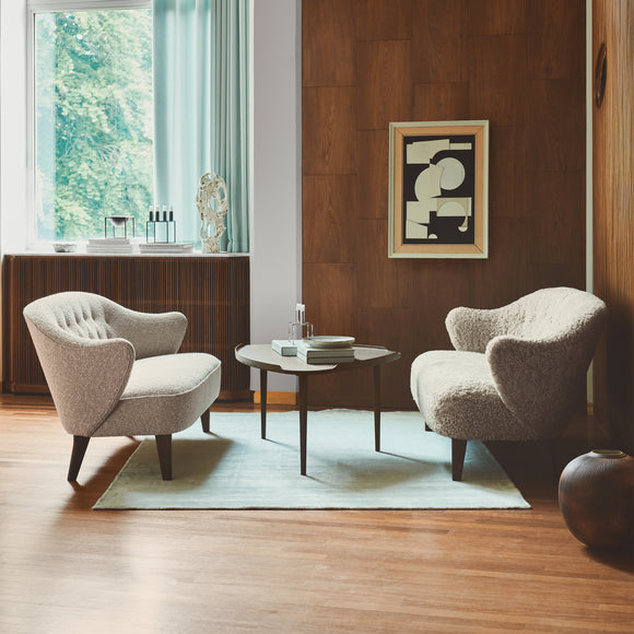The beautiful and expressive lounge sofa by Menu Design now Audo Copenhagen was originally designed in 1940 by architect Flemming Lassen. Ingeborg Sofa is based on the same design expression as the recently launched lounge chair Ingeborg, and together the two now form a matching duo. The elegant, curvy armrests add character to the design and give the impression of a warm embrace.