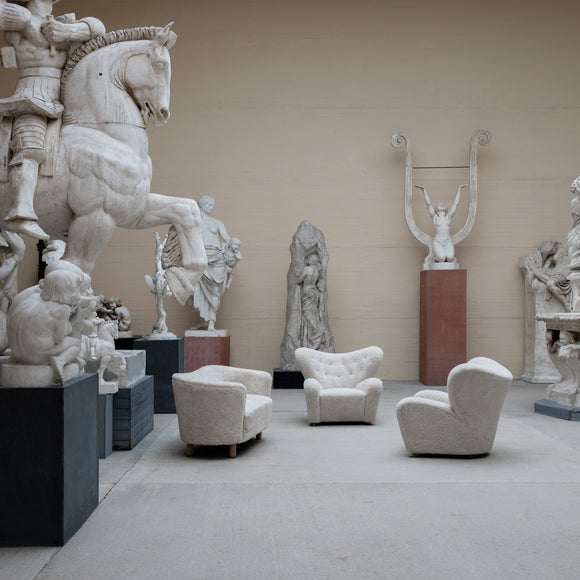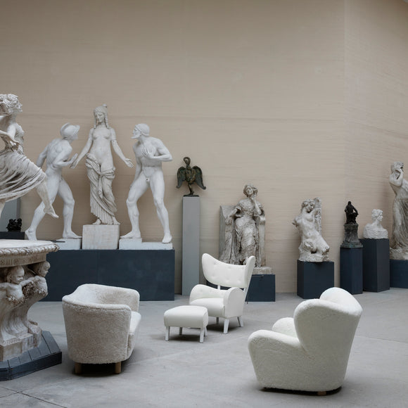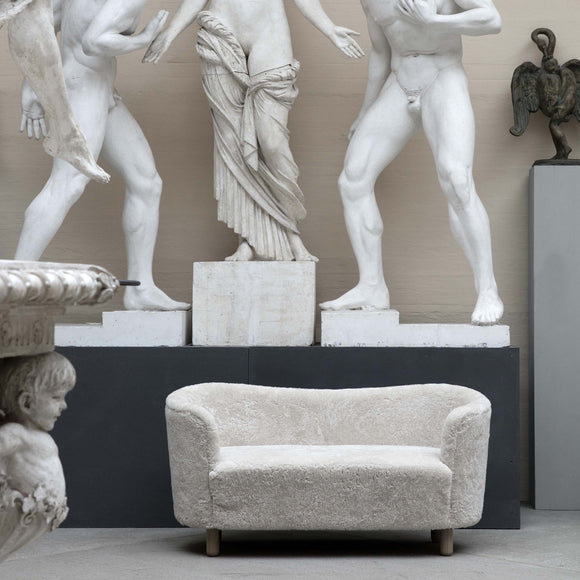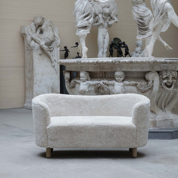 An unexpected design ready to make a statement in your living room, master bedroom, or favorite lounge space, the Mingle Sofa by Menu Design now Audo Copenhagen offers cozy, streamlined style for your well-appointed home. Originally designed by Flemming Lassen in 1935, this sofa offers a low-profile, yet elegant silhouette wrapped in plush sheepskin for endless comfort. Designed with armrests that encircle the sitters, this sofa is the perfect piece to place in a sitting room or at the end of your bed for early morning routines.