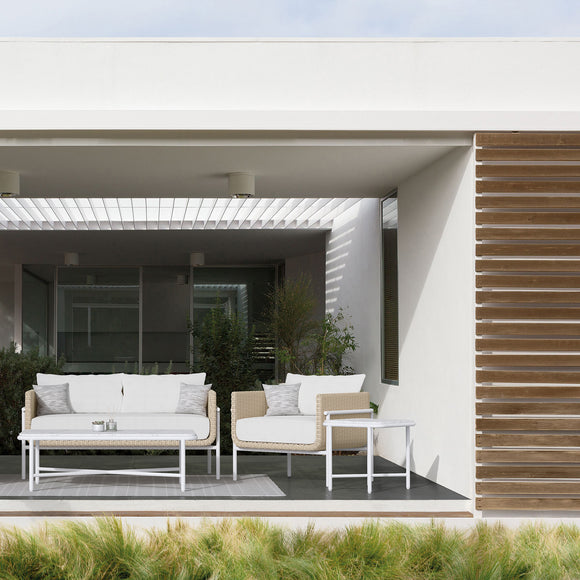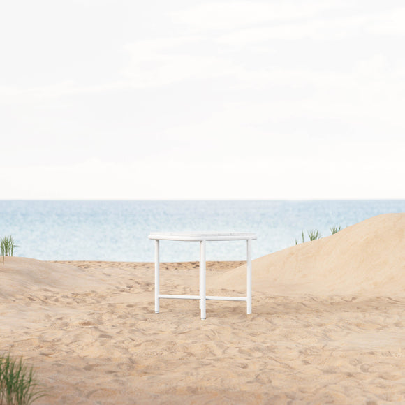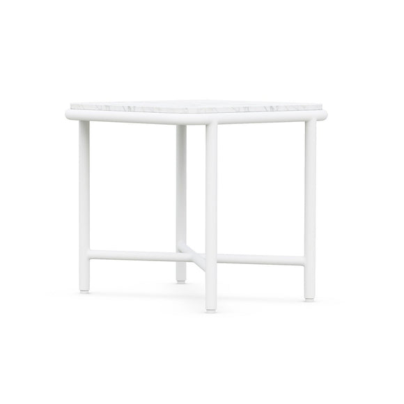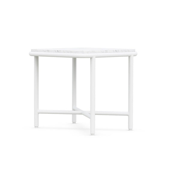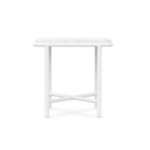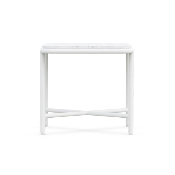 Bringing the luxury of indoor furniture to an outdoor suitable piece isn't always easy. With the Hampton Side Table from Azzurro Living, you can bring soft, yet elevated beauty to your favorite outdoor relaxation or dining spot with ease. Featuring a matte white aluminum frame with a gorgeous honed Carrara marble top, this side table offers both a sturdy accent piece for holding your drinks and favorite reading materials as well as a beautiful focal point to accentuate your outdoor living space. Pairing well with both handwoven wicker furniture or metal-framed pieces, this end table blends effortlessly, while standing out just enough to showcase a subtle touch of luxury.