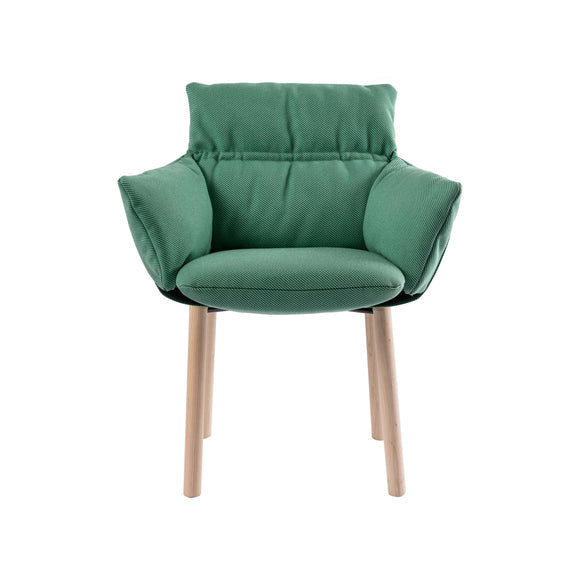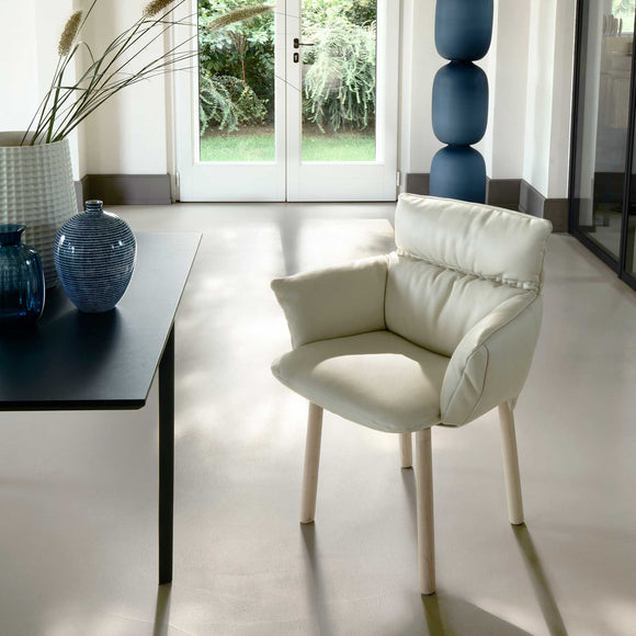 The Lud’ina Dining Armchair from Cappellini, designed by Patricia Urquiola, offers a sustainable and versatile seating solution. Constructed with recycled and recyclable plastic material, it features removable upholstery in a variety of fabrics and leathers, allowing you to personalize your space. The plush padding and sturdy wooden base ensure a comfortable seat for your chic and contemporary dining spaces.
