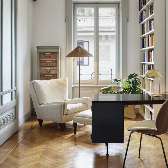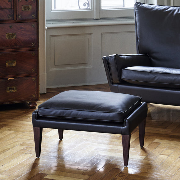 First designed in 1965, the V11 Lounge Chair is one of the most revered and highly sought-after seating designs by the leading 20th-century Danish designer Illum Wikkelsø. Like GUBI’s other Wikkelsø design, the V11 is exemplary in craftsmanship and distinctive in form, with an angular trapezoidal body echoed in its signature inverted-pyramid legs in solid wood. Despite these seemingly sharp angles, the V11 is crafted for comfort, exemplifying Wikkelsø’s belief that chairs should accommodate a variety of seating positions. Painstakingly recreated by GUBI using a process of 3D scanning, the V11 family includes a lounge chair and accompanying ottoman and available with an extensive choice of upholstery options, demonstrating the design’s aesthetic versatility.
