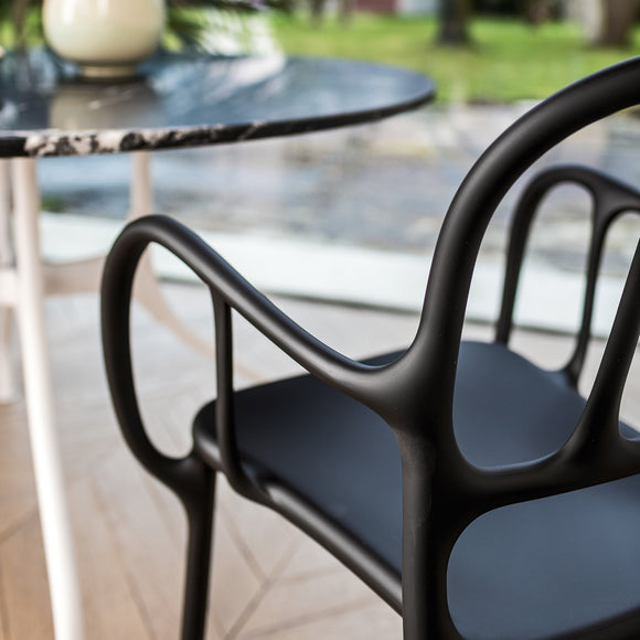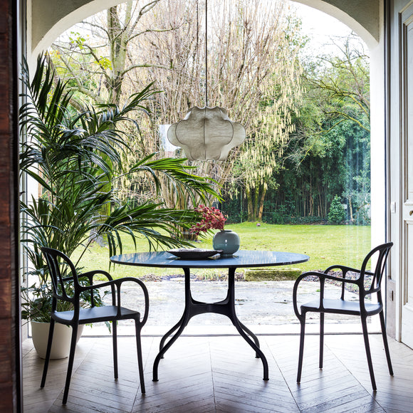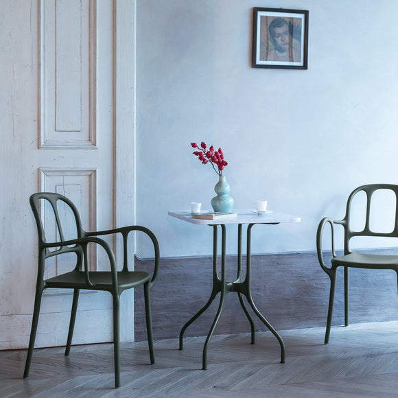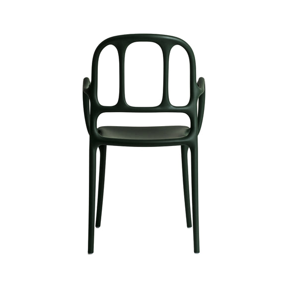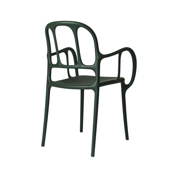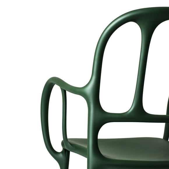 The Milà Armchair from Magis is a stylish and versatile addition to any space. Crafted from a durable mix of plastic and fiberglass, the chair offers an organic, dynamic shape with an elegant look. Its slender legs and ornamental back and armrests bring a modern charm to any environment, indoors or out.