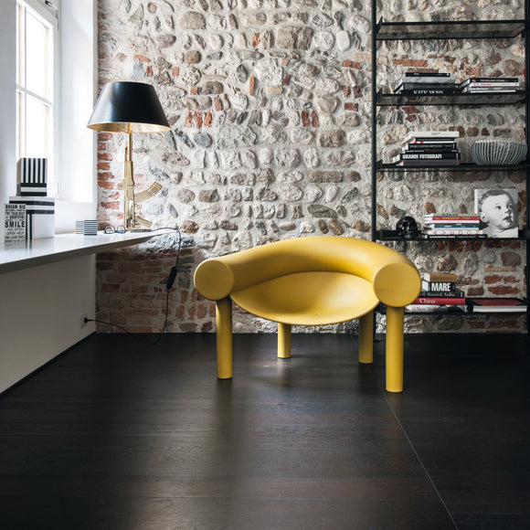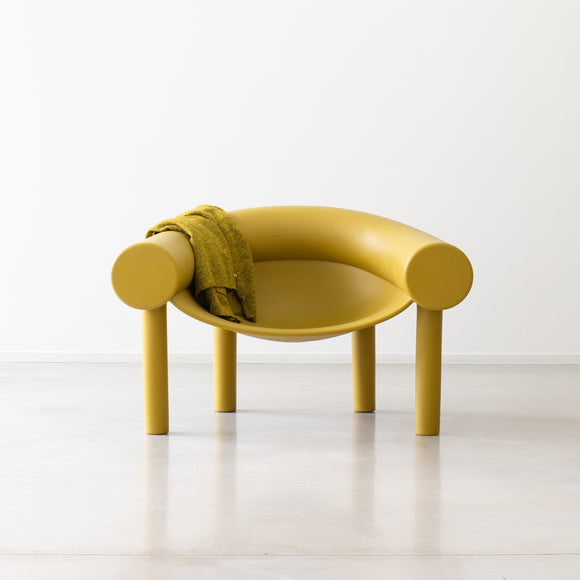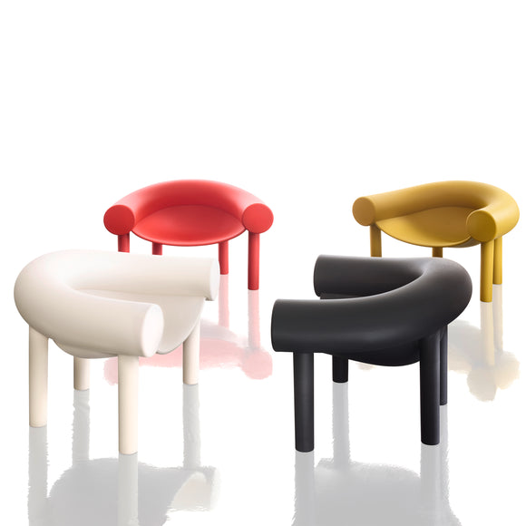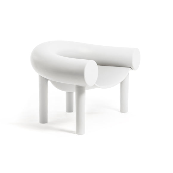 Bring playful sophistication to your home with the Sam Son Outdoor Low Armchair from Magis. Supported by tubular stilt legs, its softly suspended seat rests between a giant horseshoe-shaped element, providing both comfort and a protective seating space. Crafted from two rotational moldings, the chair boasts a rigid base and more elastic upper, for a uniquely luxurious seating experience.