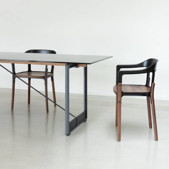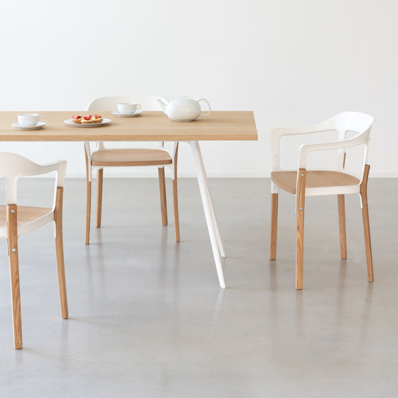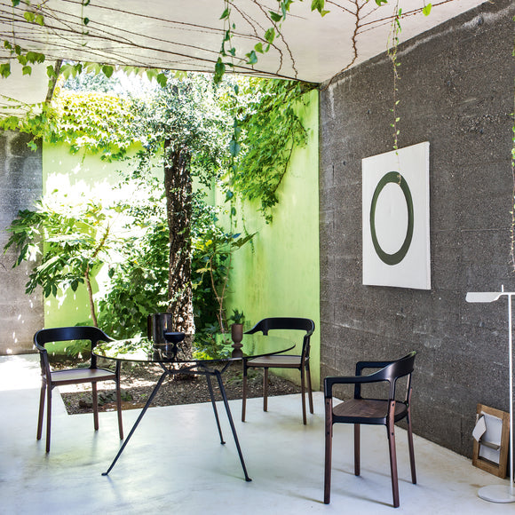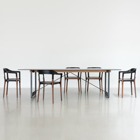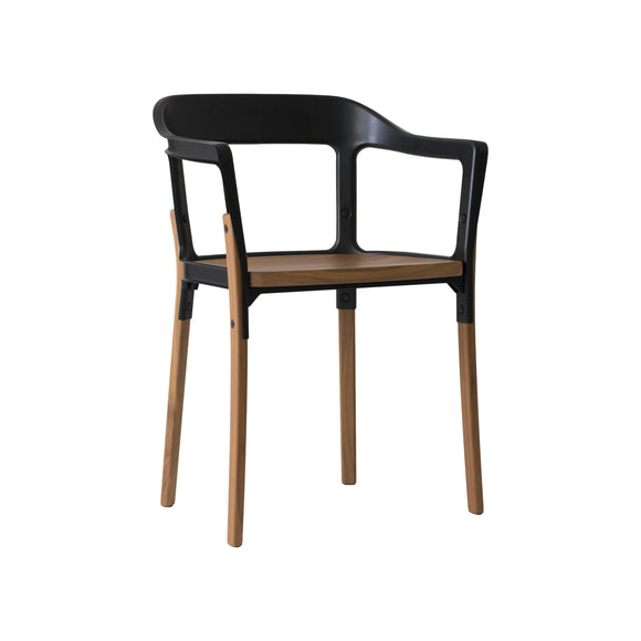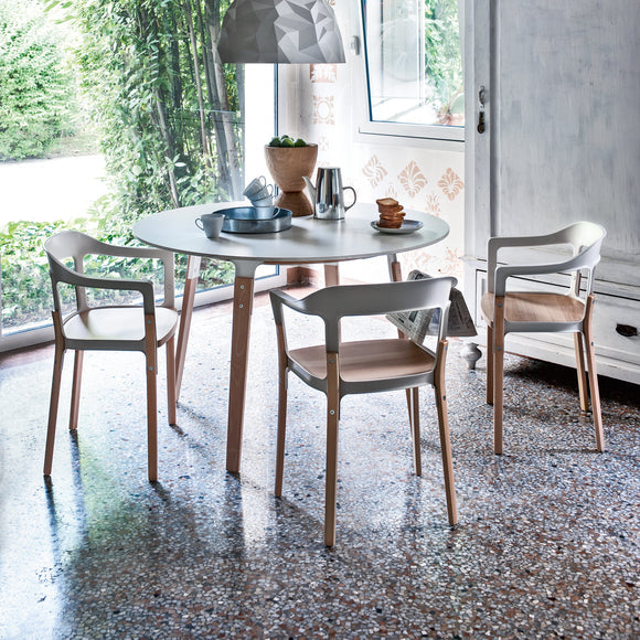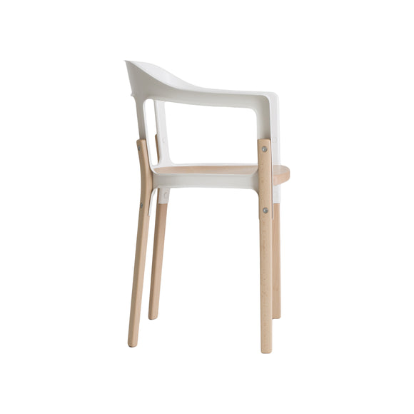Experience the combination of modern style and traditional comfort with the Magis Steelwood Dining Armchair. Boasting a streamlined design, this armchair features a curved back with a built-in armrests and gently curved legs for unwavering support. Crafted with a combination of beech wood and steel plate, its sectioned profile and exposed hardware provide an aesthetically pleasing touch. Perfect for modern interiors seeking an artistic flair.