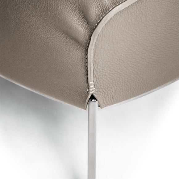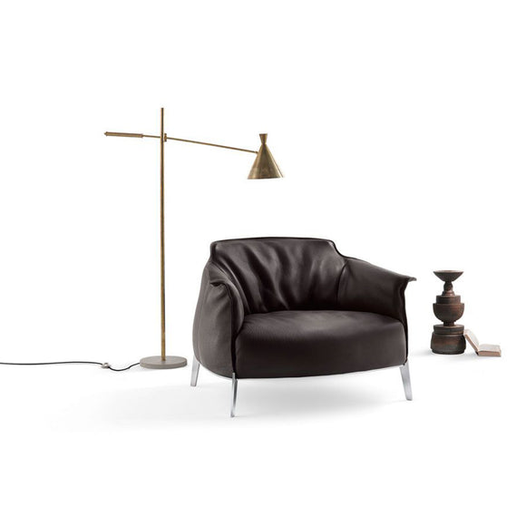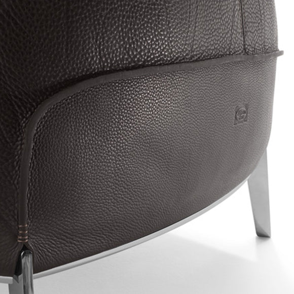 Jean-Marie Massaud adds a surplus of softness to the Archibald collection: The Archibald gran comfort armchair. The central element is the large, soft seat cushion. A luxurious leather casing with rich goose-down padding creates a refined contrast with the minimal architectural cut of the steel frame that houses it.