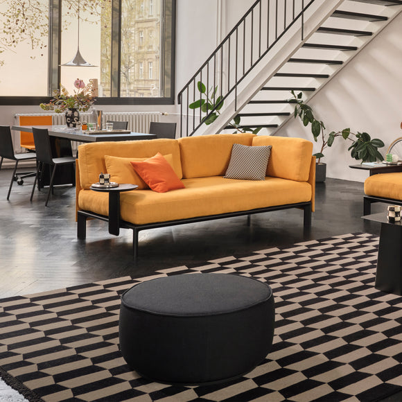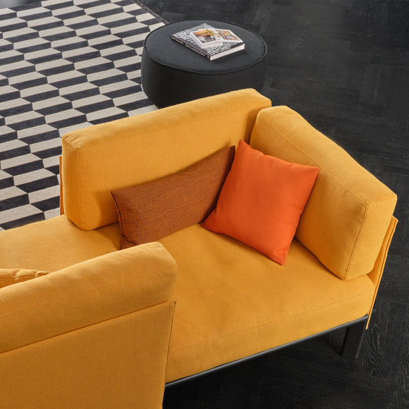 Matching the soft shapes of the sofa, two ottomans combine beautifully with the various sofa sizes. They feature a distinctive seam exactly aligned to the height of the cushion seams on the sofa, emphasizing their place in the Mariposa family.