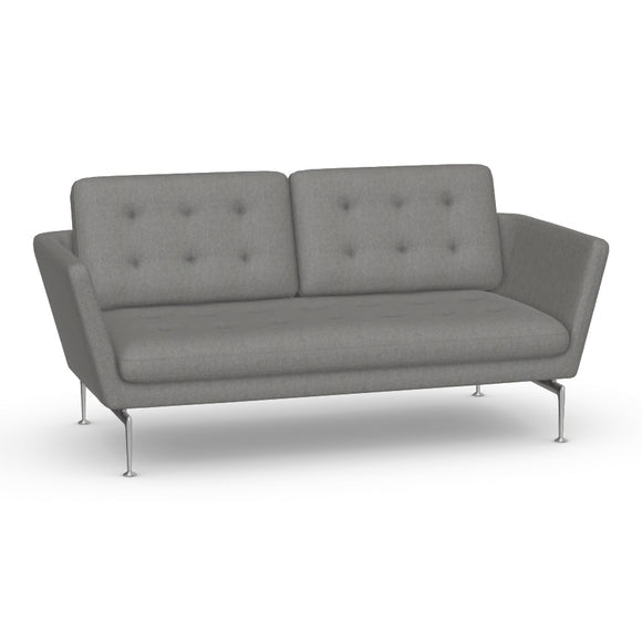 The Suita 2-Seater Sofa with Tufted Cushions from Vitra is a modern and stylish addition to any living space. With a geometrically precise body and tufted cushions that seem to float above sleek aluminum legs, this sofa exudes an industrial and technological aesthetic. Inspired by mid-century American design, it offers both comfort and style, perfect for an office or compact living space.