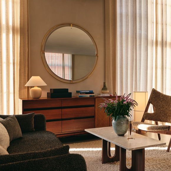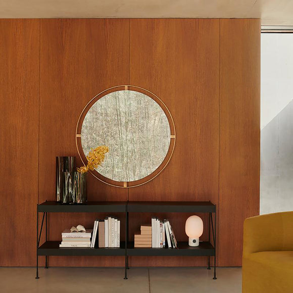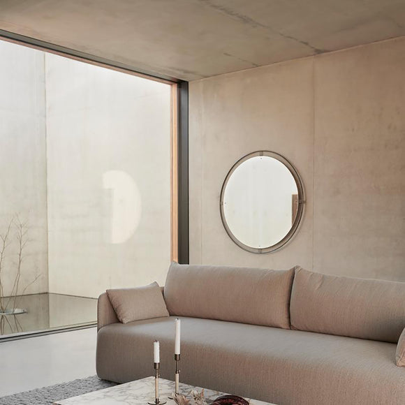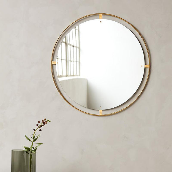 Surrounded with a bronzed or polished solid brass frame, held in place with decorative screws, the Nimbus mirror by Menu Design now Audo Copenhagen measures 43.3 in diameter, making it ideal as a functional object, as well as a decorative addition to homes, hotels or offices.