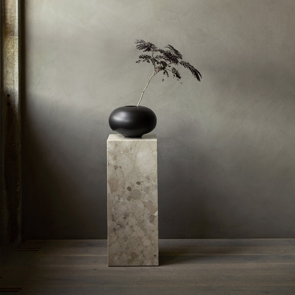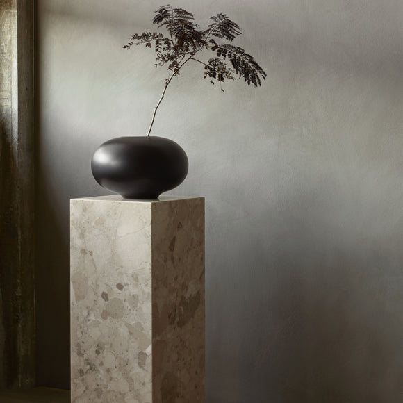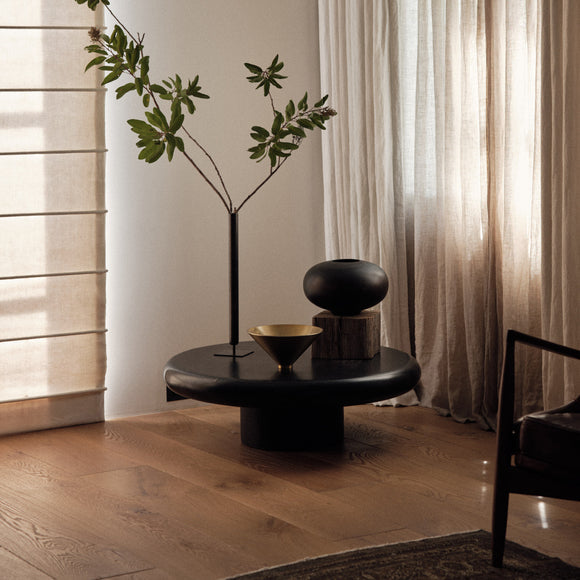 Perfectly proportioned, the Surround Vase by Menu Design now Audo Copenhagen is shaped from a single piece of solid wood that displays unique natural grain patterns. The rotund, tactile design, created for Audo Copenhagen by master stylist Colin King, is equally impactful styled with a few stems of flowers as it is left unfilled.