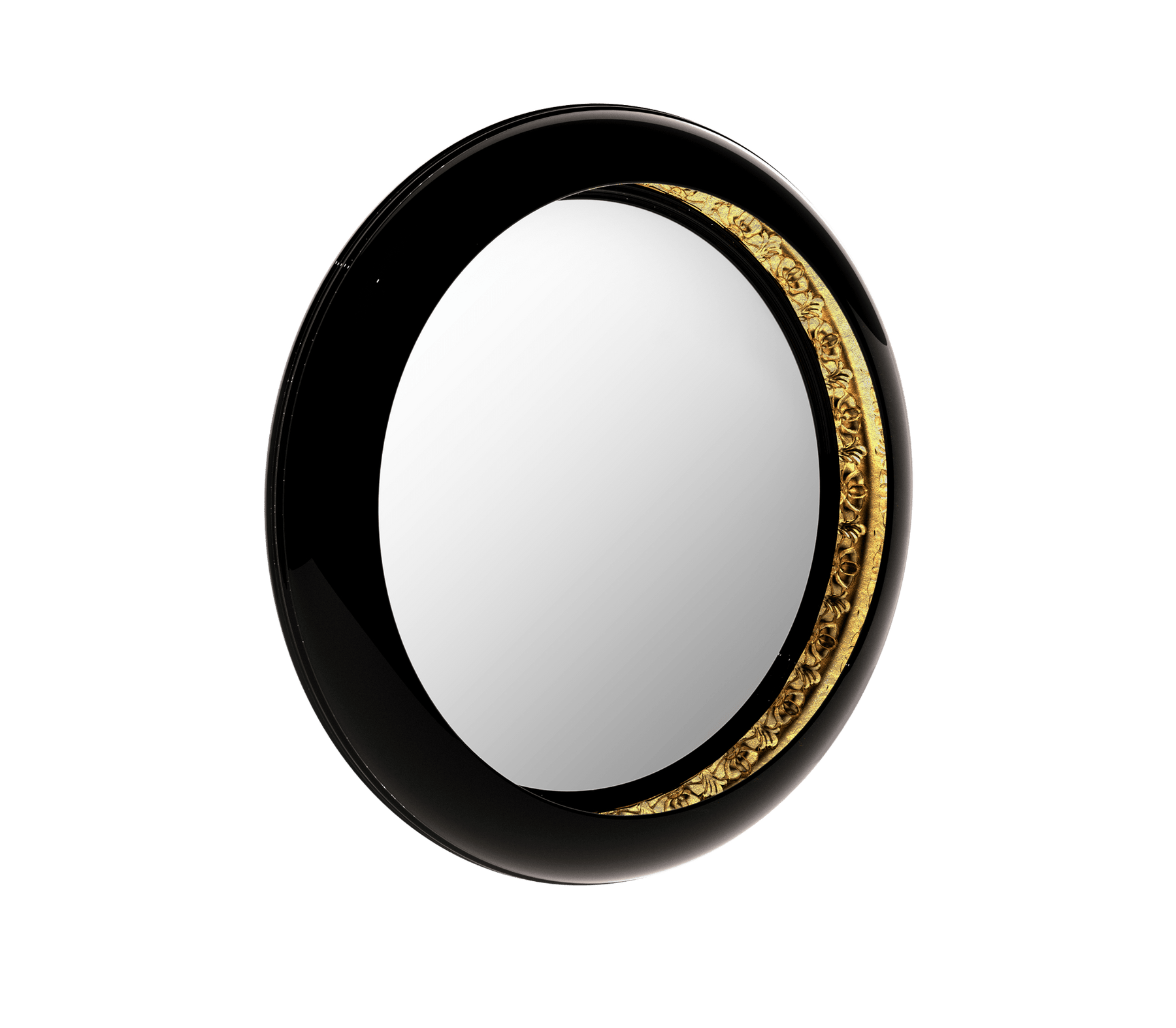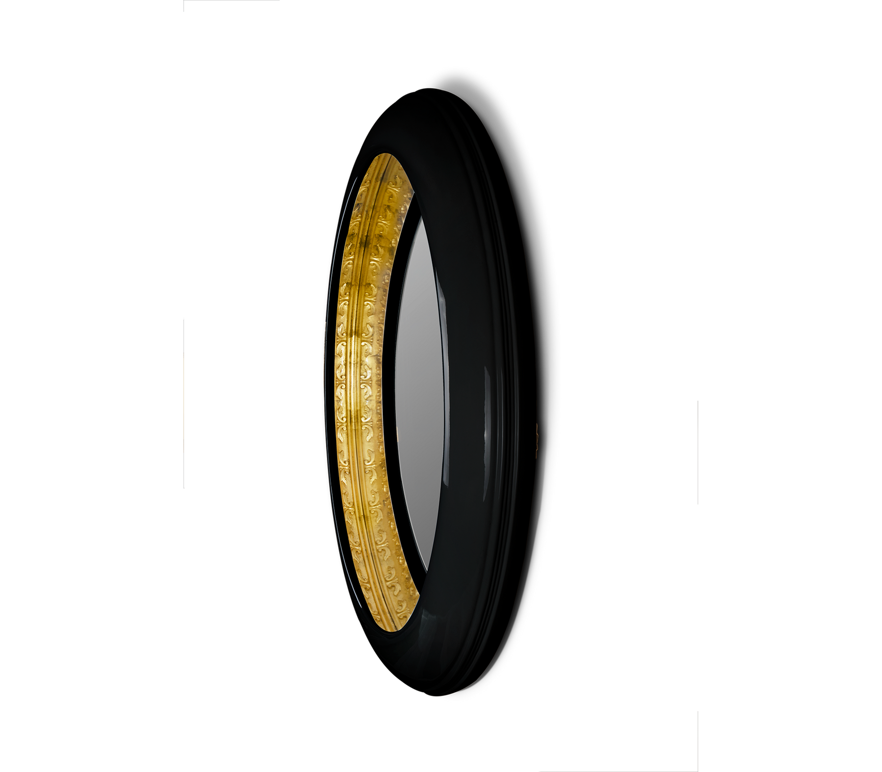 Like a jewel that reflects eternal beauty when it's admired, the Ring Round Mirror is the soul, which aspires to the sublime. The richness of this large wall mirror lies within its reflection. Ring Round Mirror evokes an antique unreachable treasure that could only be found in the most remote place on Earth. The Ring Round contains a mirror frame in black lacquered high gloss, with a minimalist line on the outside and another carved handmade on the inside. A precious piece of art with its interior made of refined carved wood, as exquisite as its owner. Ideal for a unique and exclusive home, Ring Round Wall Mirror will reflect elegance once it’s in your living room or your bedroom.