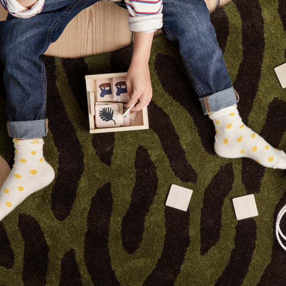 A new friend and a soft rug for the kids’ room. The tufting of this rug in the shape of a tiger makes it soft and fluffy. As the new favorite place to play or the spot for a spontaneous nap, this rug will be the foundation of new adventures in the kids’ room.