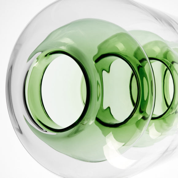 The Bump Vase from Tom Dixon is an artistic statement piece with its bold and intricate design. Handcrafted from borosilicate glass, and finished with a green-tinged hue, each vase exudes a distinctive sophistication that instantly elevates any living space. Artfully equipped to imbue a room with an air of eclectic elegance, this vase will add an alluring alchemic flair to any home.