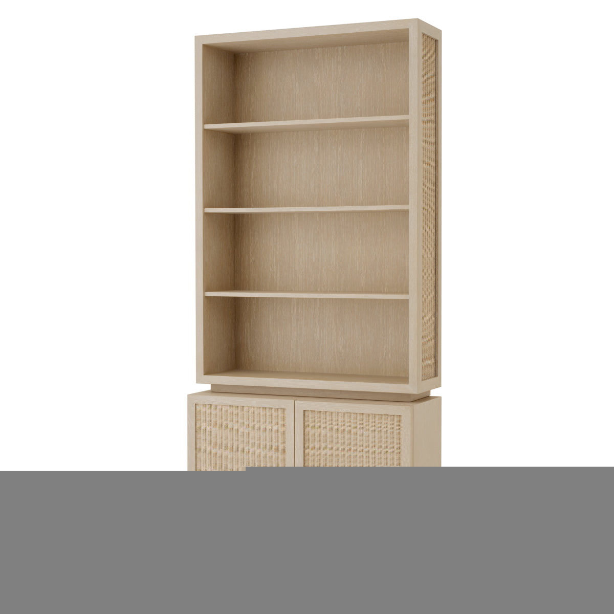 Elevate your interiors with the Cabinet Borchard, where caramel oak veneer meets intricate rattan paneling.