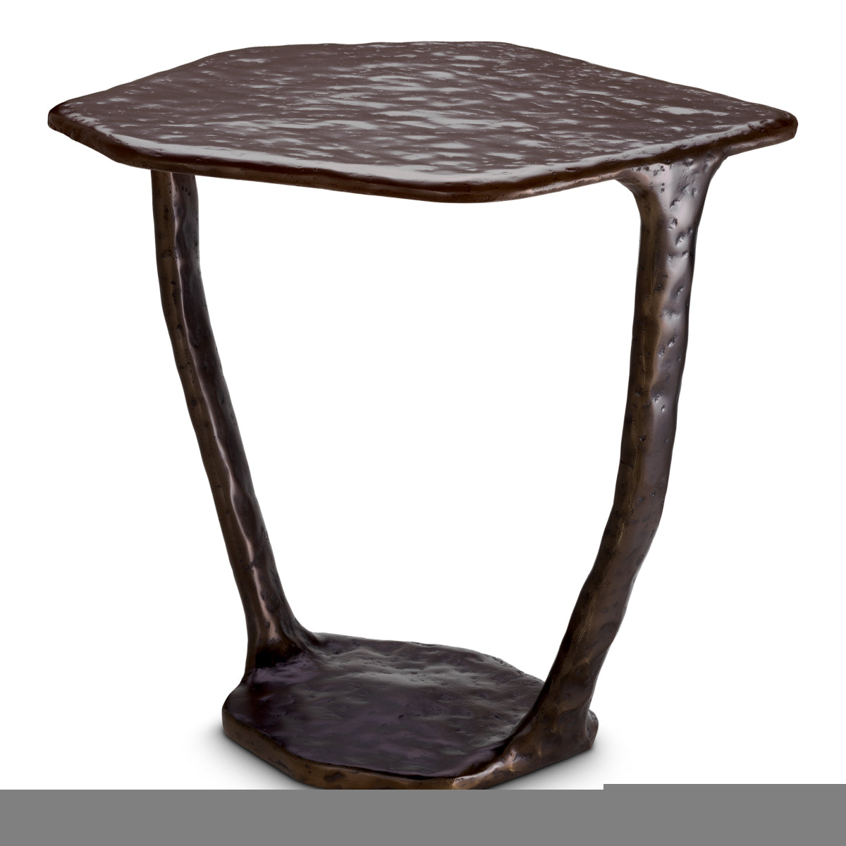 Encased in a lustrous bronze finish, this table seamlessly blends the natural with the industrial. The free form shape embraces the spirit of creativity, infusing your space with a sense of unique charm. The Side Table Tigra is a symbol of sophistication, individuality and rugged flair.L. 48 | W. 46 | H. 50 cm