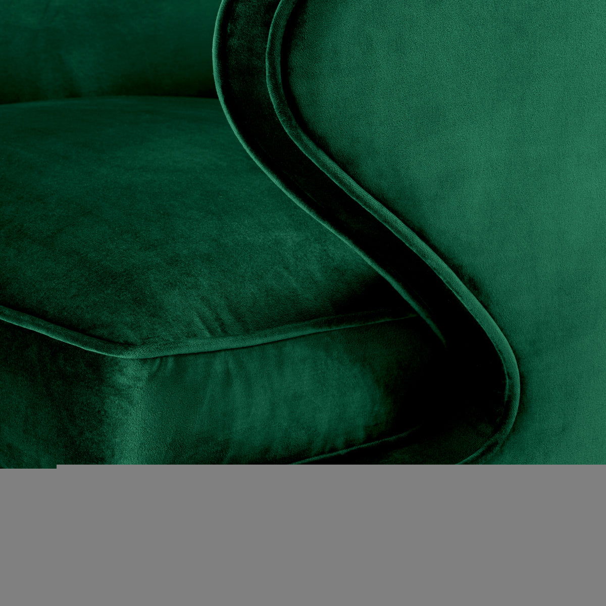 Featuring a Roche green velvet upholstery with piping, this beautiful retro design accent chair combines a comfortable seat with a swivel base.W. 75 | D. 80 | H. 73 | SD. 59 | SH. 47 | AH. 67 cm