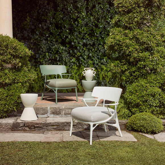 Experience ultimate comfort and sustainable design with the A.I. Outdoor Lounge Chair from Kartell. The latest addition to the A.I. family, this armchair boasts a futuristic graphic design and maximum seating comfort. Crafted using artificial intelligence, this unique lounge chair effortlessly accents rooftop terraces and garden patios alike.