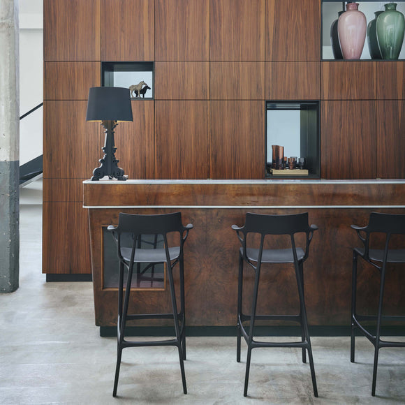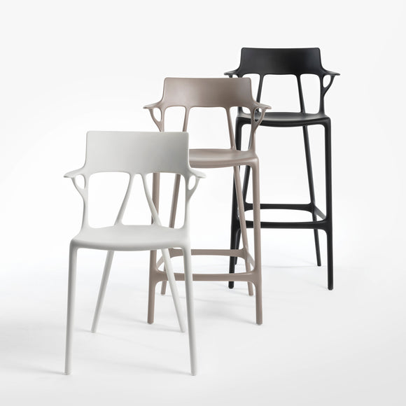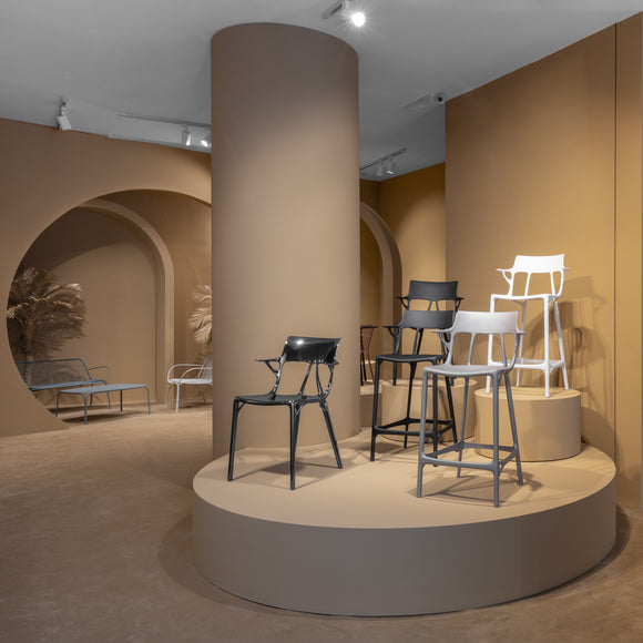 The A.I. family is growing, with the addition of A.I. Stool, a product made from recycled material with a clear focus on comfort thanks to a broad, welcoming seat. Available in two heights to meet all needs.