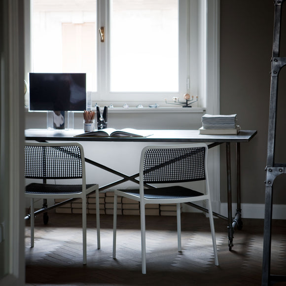 Audrey, the eclectic seat combining aluminum and plastic and designed by Piero Lissoni is a versatile and contemporary chair which because of its simple, clean lines due to a special die-casting process is composed of only two parts and made without welding. It is multifunctional and adaptable to all uses - indoor, outdoor, the home, office and the contract - with its wonderfully rich range of combinations (about 50 in all).