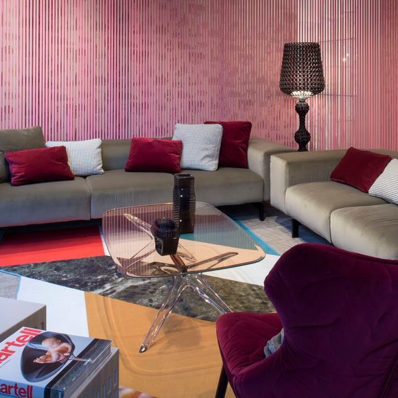 Kartell lifestyle enhances the living room with Philippe Starck’s Blast, a side-table in two shapes (square and rectangular with rounded corners) with clear bases and tops. The design is a development of the Sir Gio table, with the option of matching and combining different base and top colors. The central core of the base can be chrome-plated or metallic copper.