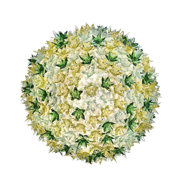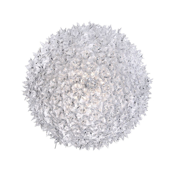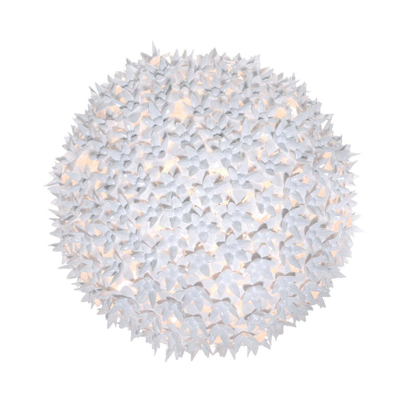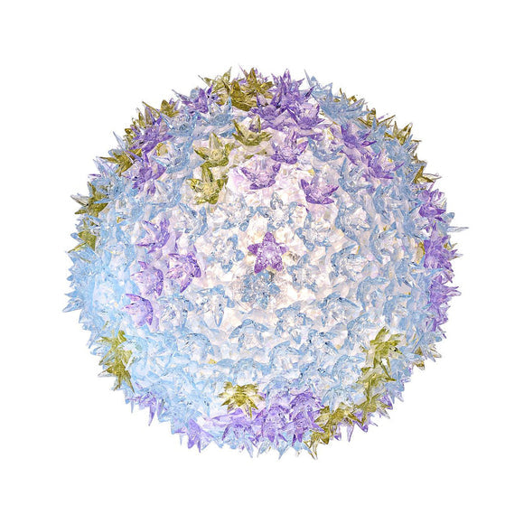 How do you like the idea of having a floral arrangement above the table? The Bloom New lamp family with its elliptical shape and its distinctive original structure covered by sparkling polycarbonate flowers as pure and precious as crystal comes in three different sizes with various functions - hanging, wall or ceiling fixture. As delicate as a spring bouquet, the Bloom lights offer new and sophisticated multi-color nuances in lavender and mint or an elegant transparent white monochrome. A series of little lights located within the frame beams the light shafts through the flowers to refract on the faceted surfaces of the petals and multiply a thousand reflections.