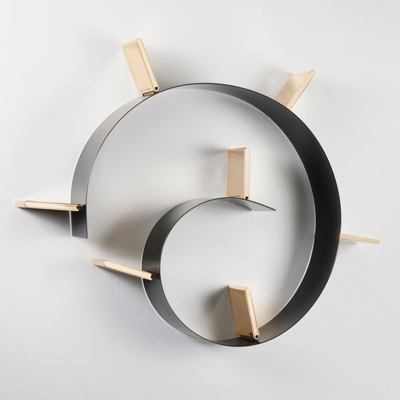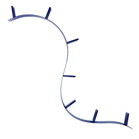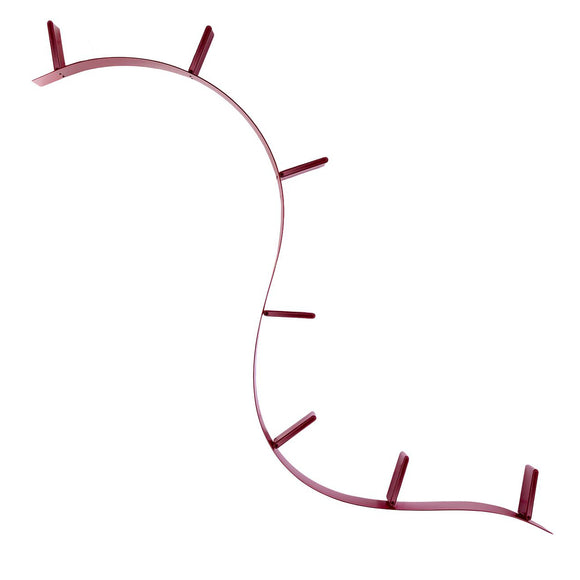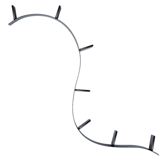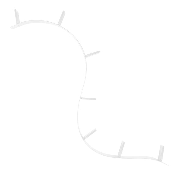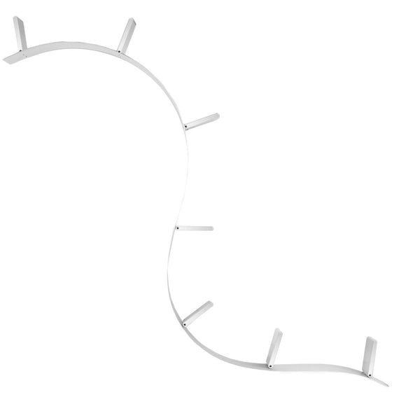 Available in three different lengths, Bookworm is marked by a series of bookend supports. Bookworm combines flexibility and superior durability allowing approximately 20 lbs between each support. It is advisable to wall-mount the shelf in a curved shape to keep the materials in tension and to increase resistance once loaded.