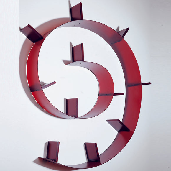 An artist's creativity combined with a great company's technology gives life to a bookcase design of industrial scale that can rightfully be considered the world's most daring and revolutionary: Bookworm, the flexible bookshelf. A careful analysis of extrusion technology has allowed the creation of a curvy bookcase which assumes any desired shape, without compromising toughness and functionality. Unlimited shapes can be formed, limited only by personal creativity.