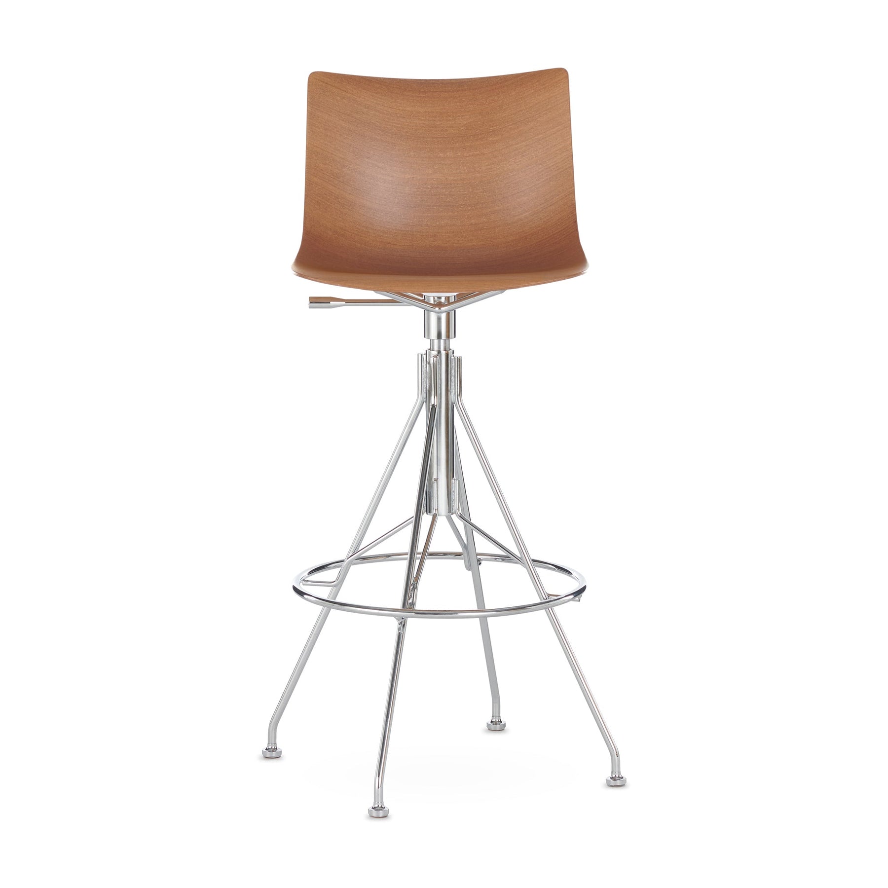 Part of Philippe Starck’s SMART WOOD family for Kartell, the C.KOYA Bar Stool features an essential, minimalist design. Its curved 3D wood seat offers a warm contrast to the clean lines of the painted or chromed steel frame, creating a distinctive element for any setting.