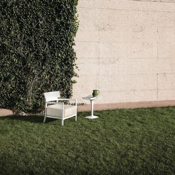 Experience the perfect balance of form and function with the Cara Mat Outdoor Armchair from Kartell. Crafted with classically rigorous lines, this chair offers both style and comfort for poolside patios and high-rise roof decks. The industrial vibe and technological innovation make it a truly unique addition to Kartell's range of luxurious soft furnishings.