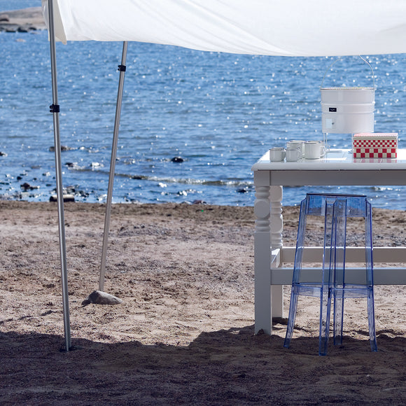 A modern take on a traditional silhouette, the Charles Ghost Transparent Stool (Set of 2) from Kartell showcases all the characteristics of classic high stools. Crafted from a Kartell's renewable polymer derived from paper waste, this stool is incredibly durable and suitable for both indoor and outdoor use. Station along a kitchen island countertop or poolside high-top table for a chic addition to your contemporary abode.