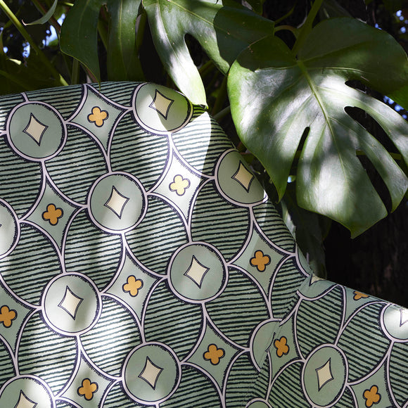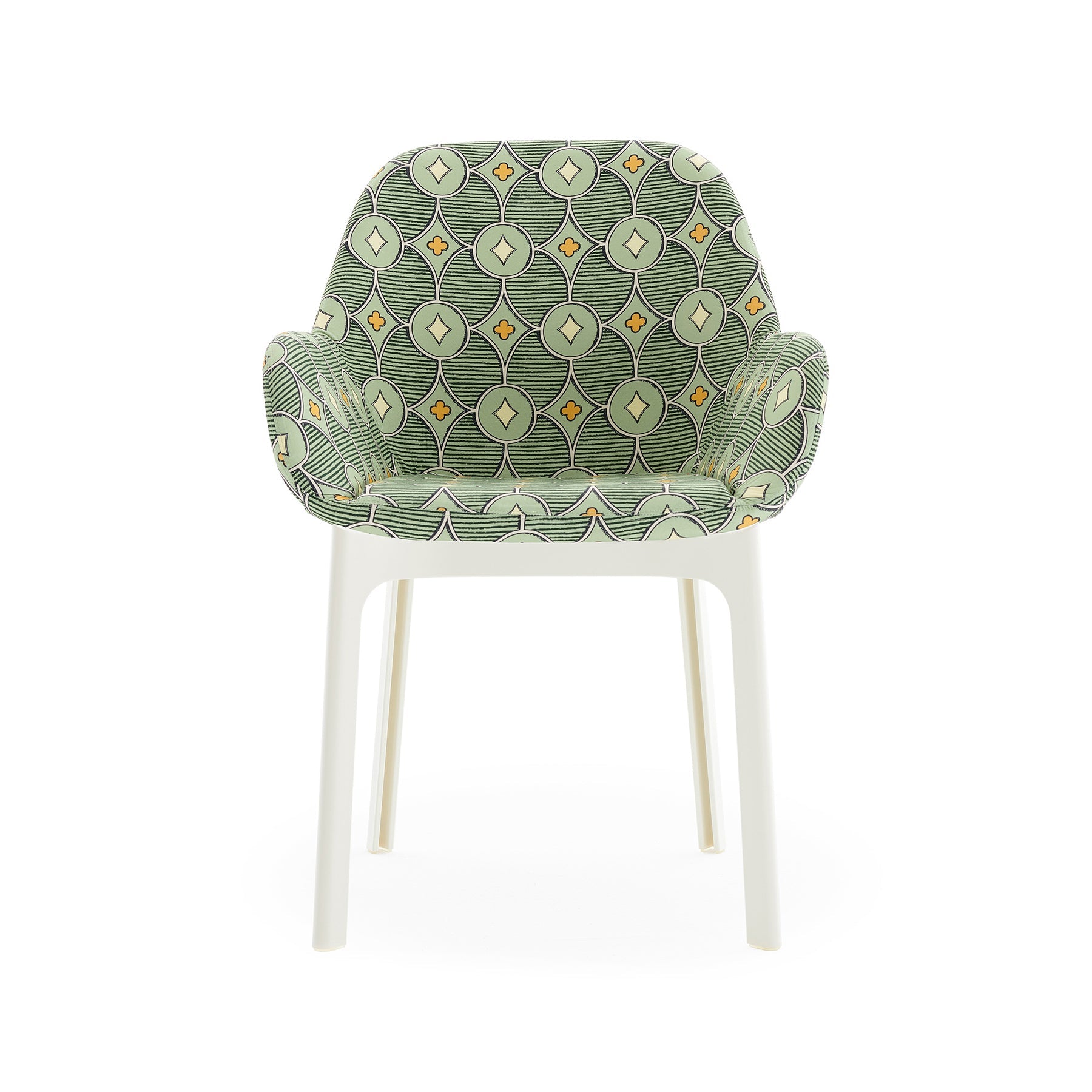 Kartell's Clap Armchair gets a vibrant update with Rubelli Quatrefoil® fabrics designed by Luke Edward Hall. Inspired by carpet designs, the interlocking geometric patterns give new life and character to this comfortable armchair, amplifying personalization options for any space.