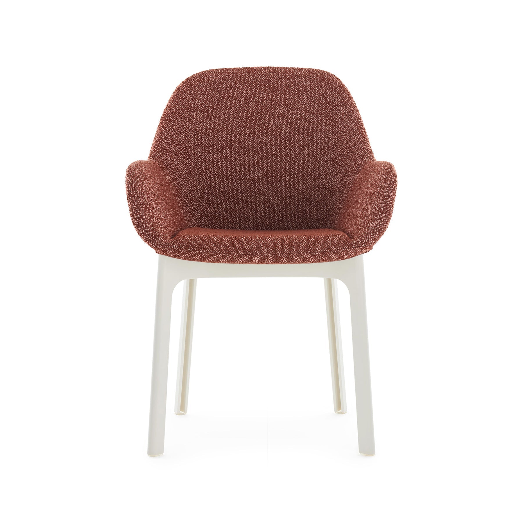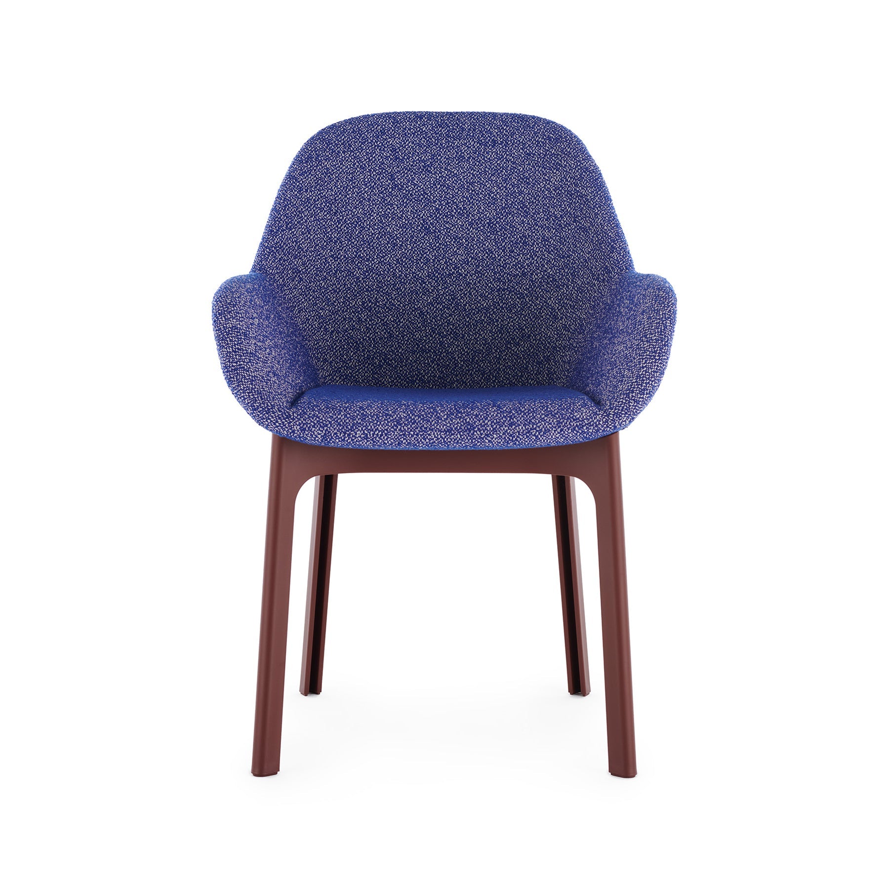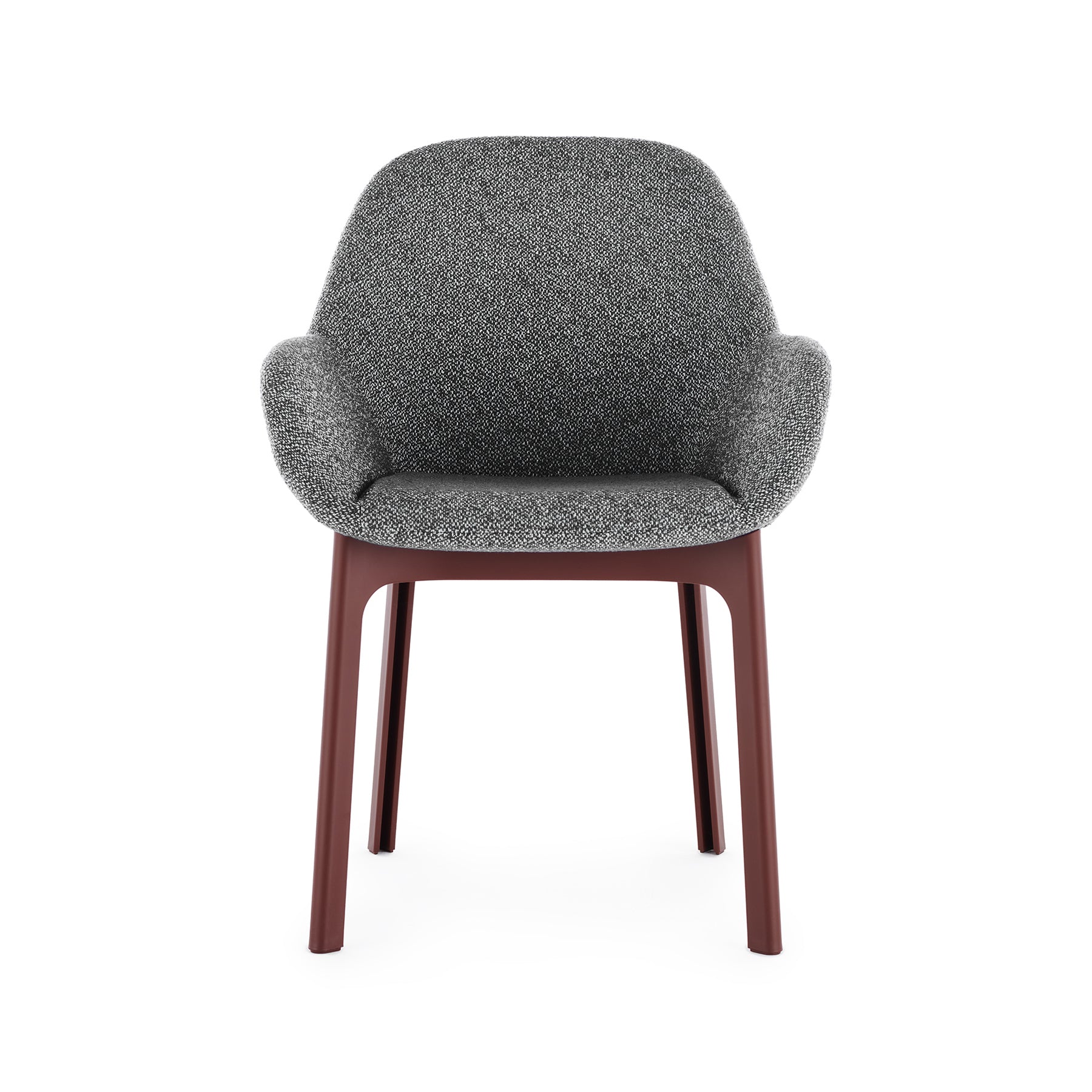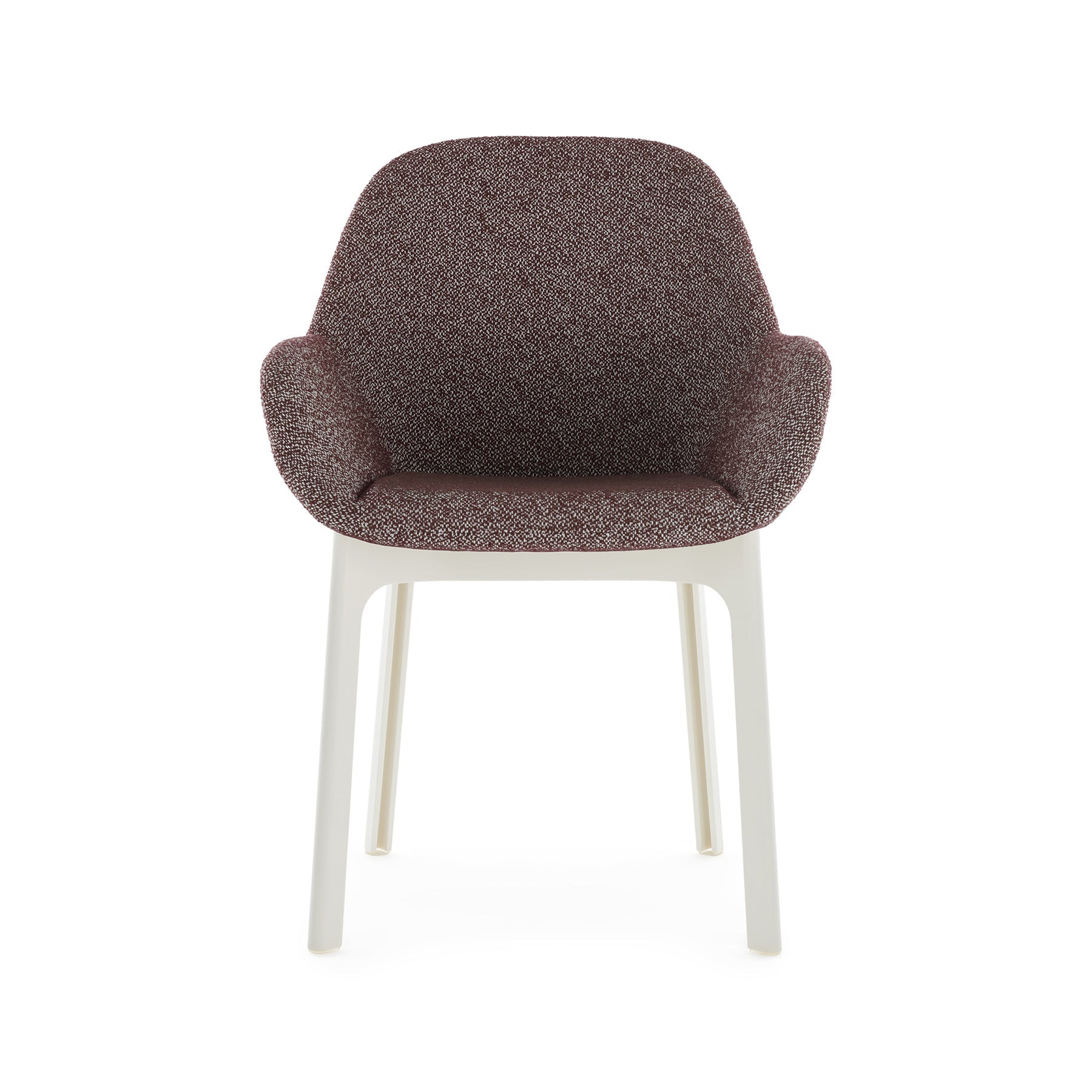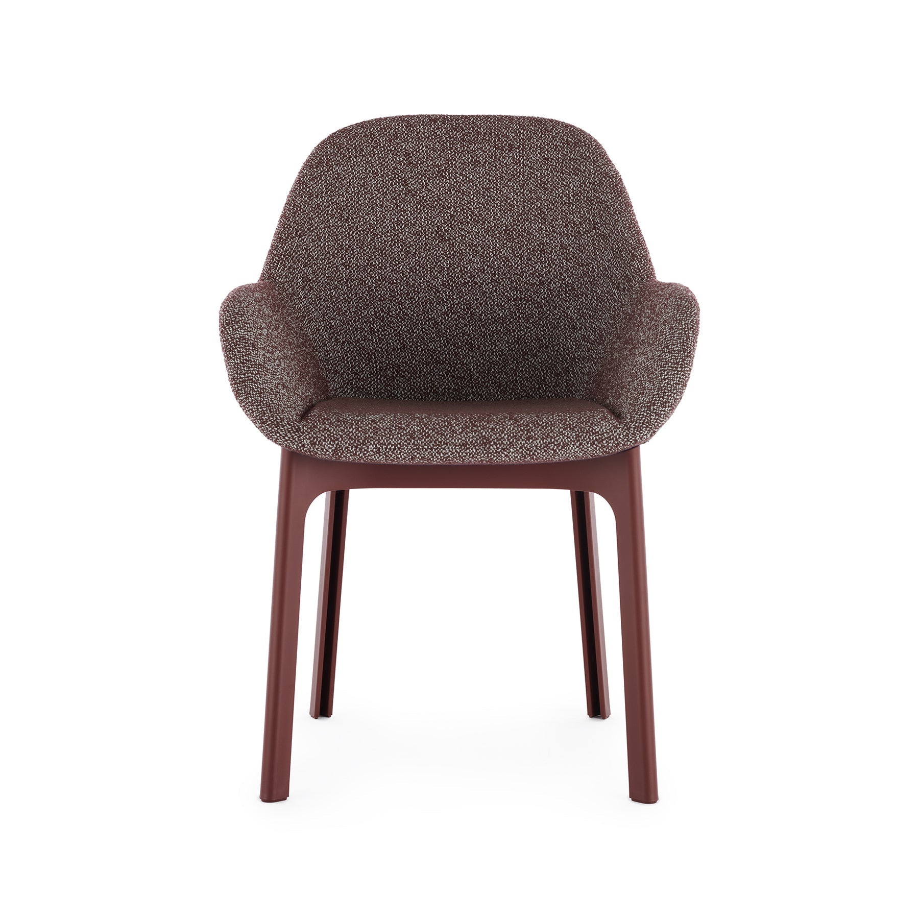 Designed by Patricia Urquiola, Kartell's Clap armchair adapts easily to various settings, from contract to home. Now offered with new frame colors like Bordeaux and Powder Pink, it also features updated Shirley melange fabrics for enhanced furnishing possibilities.