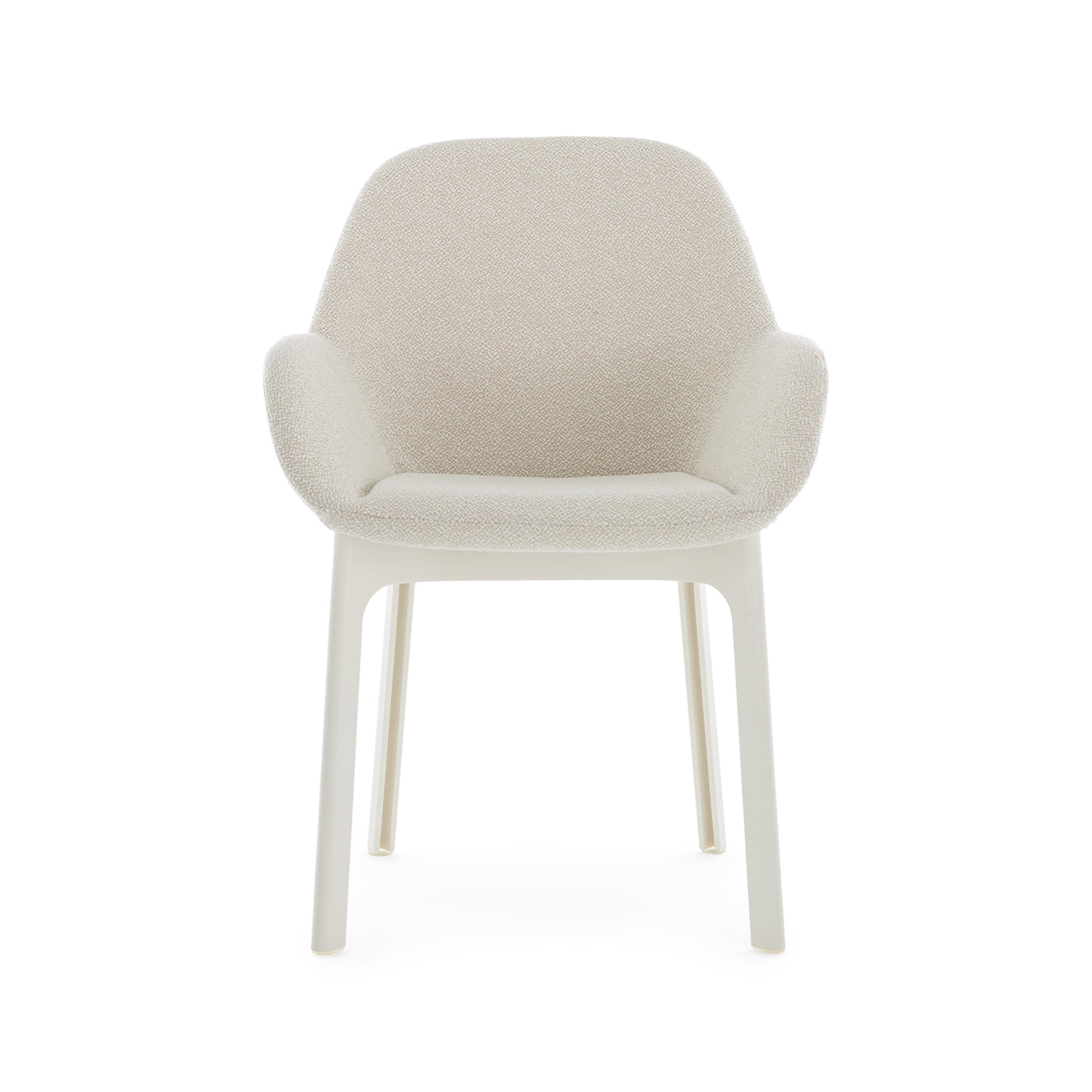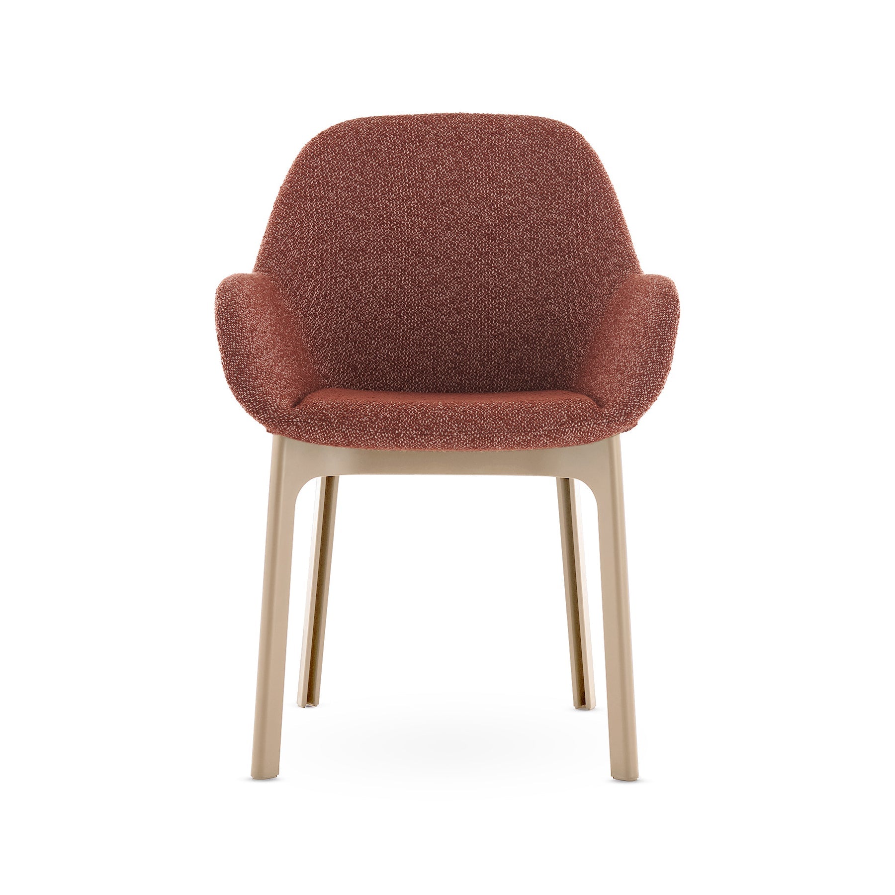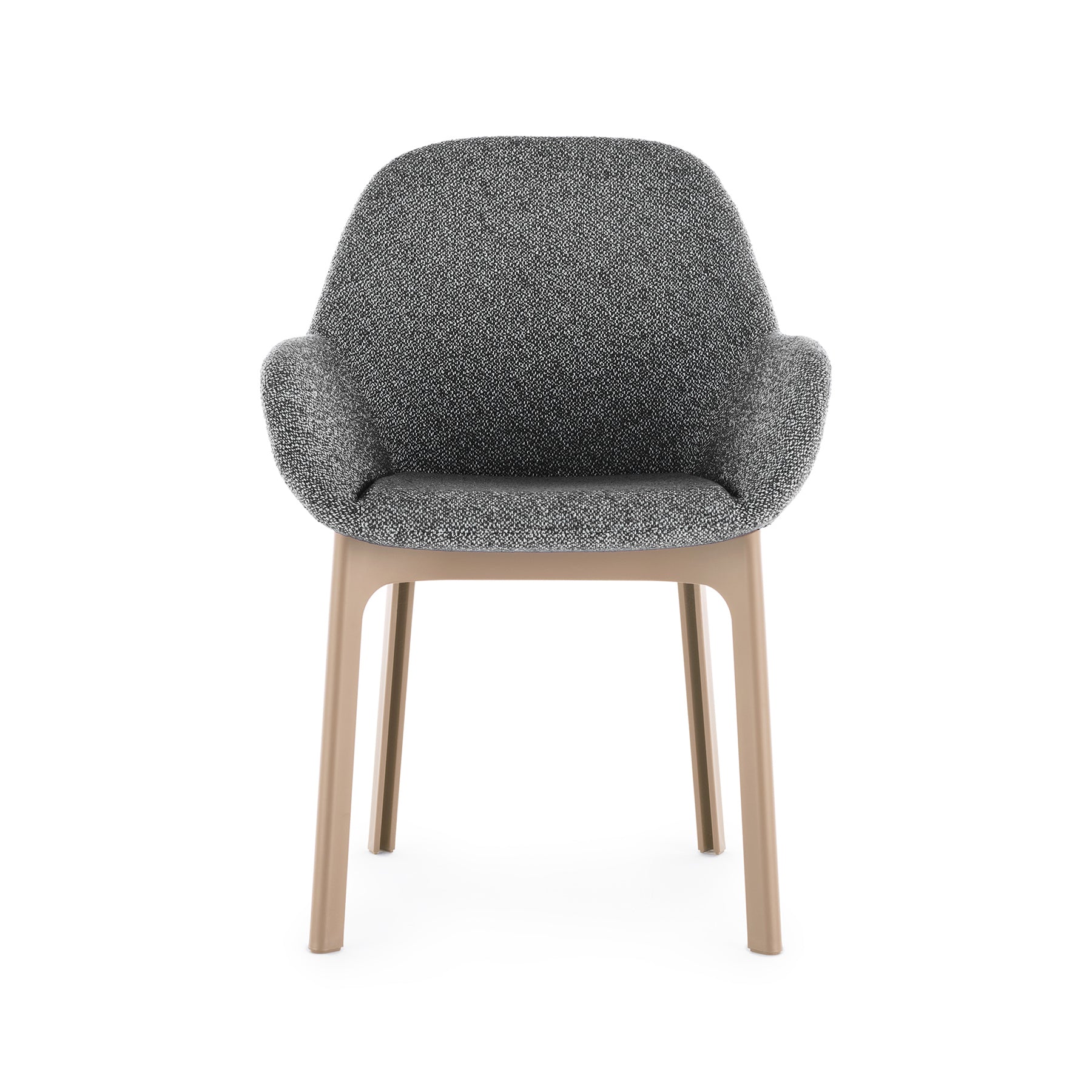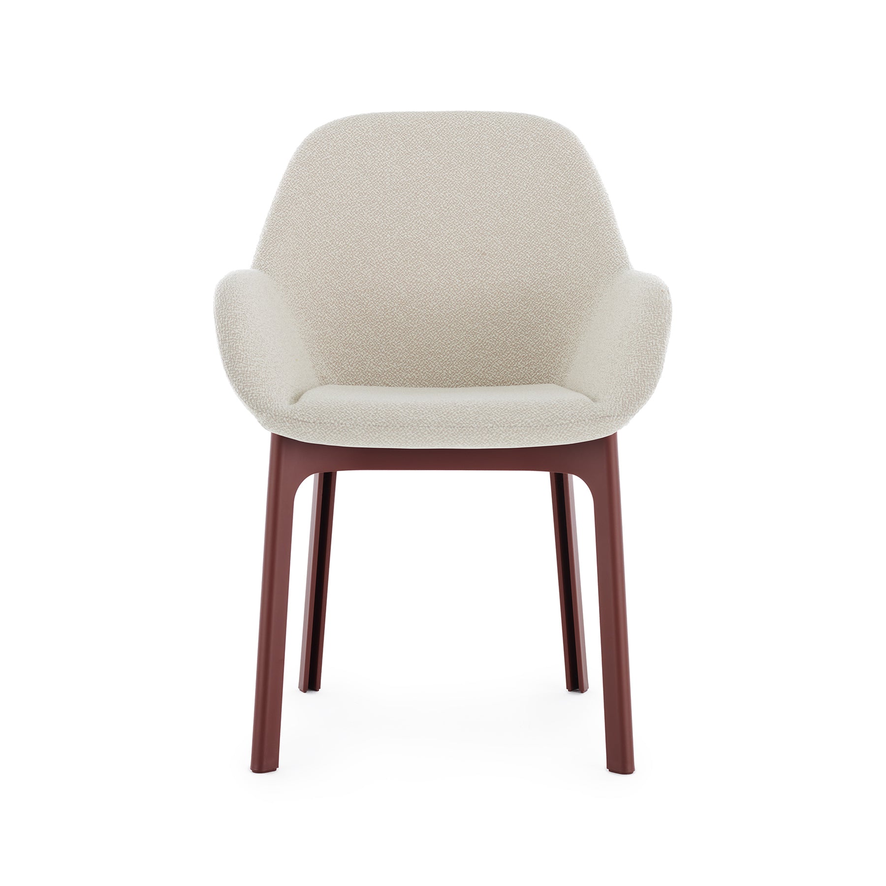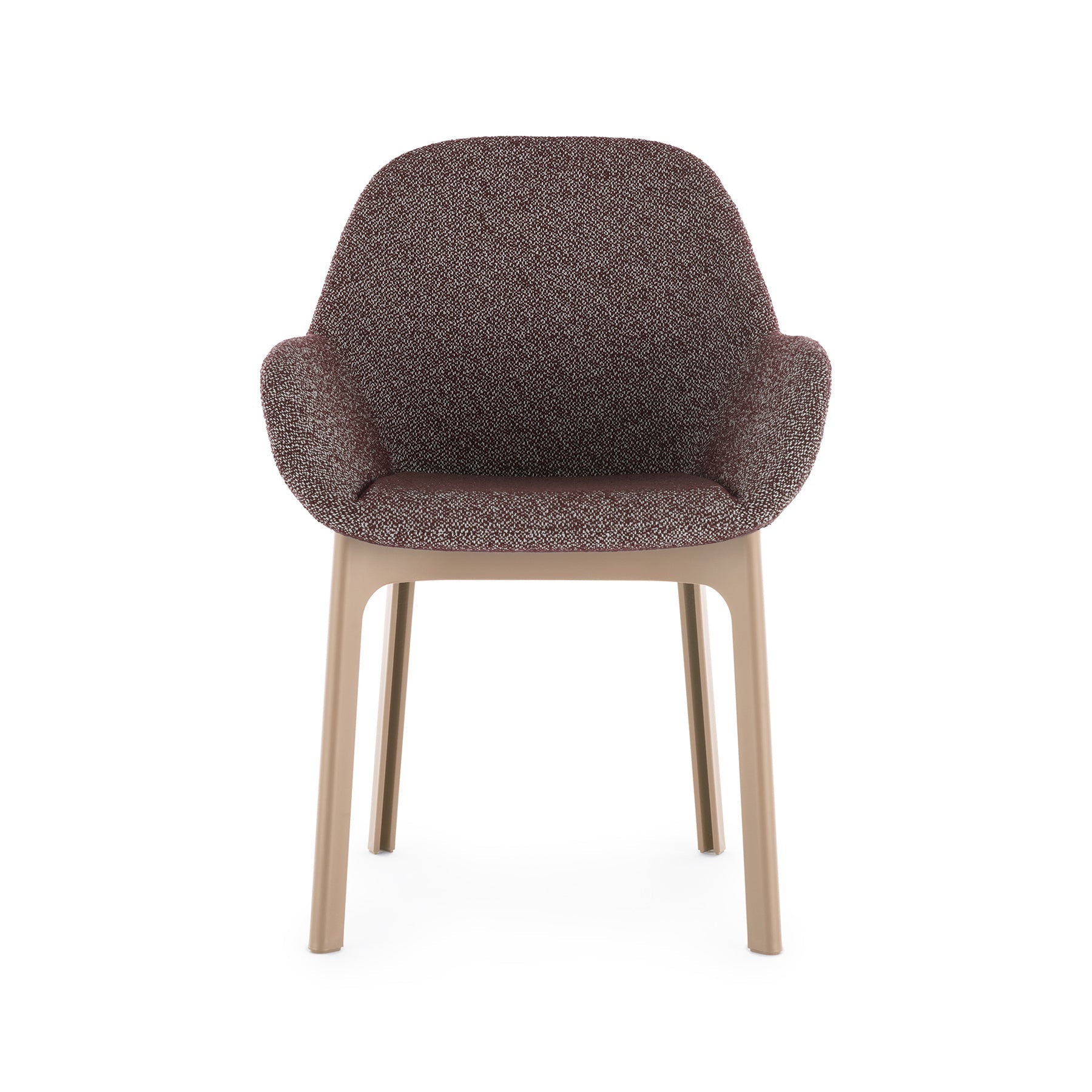 Designed by Patricia Urquiola, Kartell's Clap armchair adapts easily to various settings, from contract to home. Now offered with new frame colors like Bordeaux and Powder Pink, it also features updated Shirley melange fabrics for enhanced furnishing possibilities.