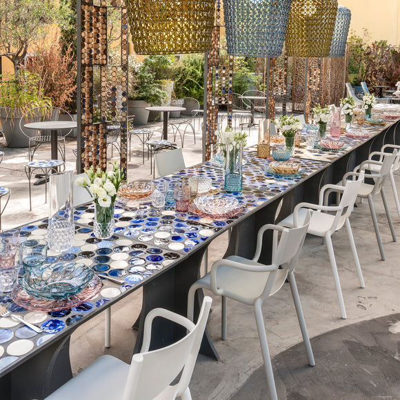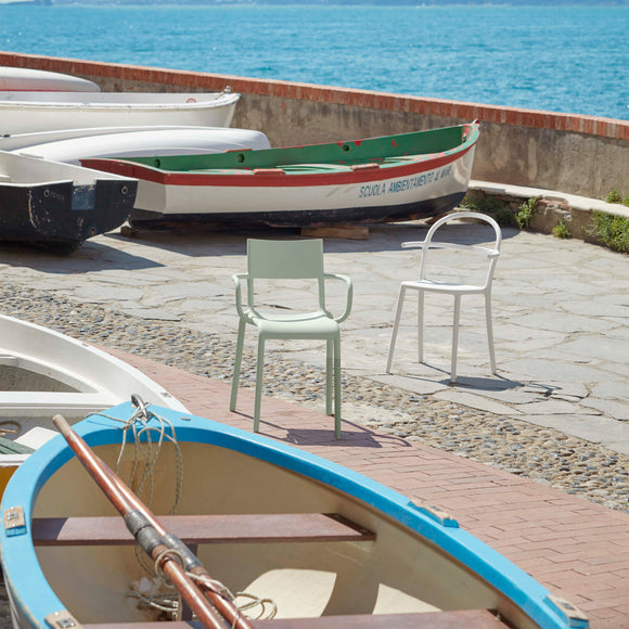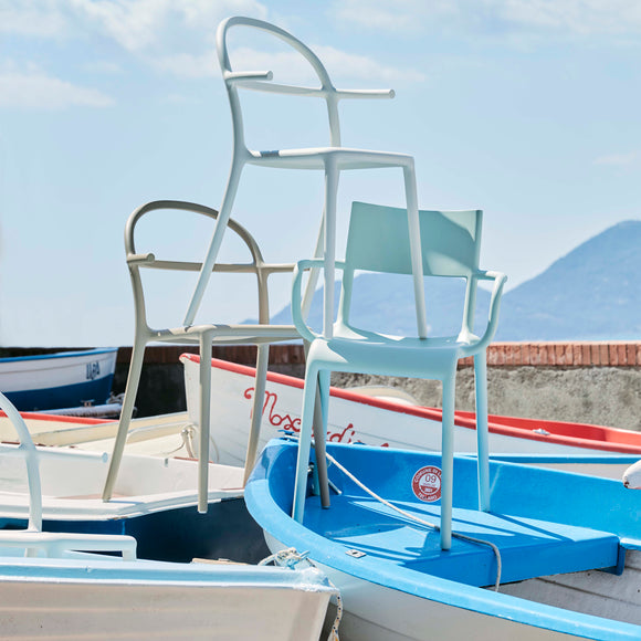 Introducing the sleek and versatile Generic A Chair, created by renowned designer Philippe Starck for Kartell. With its high seat back and curved arm rests, this modern chair offers both style and comfort. Perfect for any environment and available in an array of muted colors, it's an elegant addition to any space. Lightweight and stackable, it's the ultimate in versatility and space-saving design.