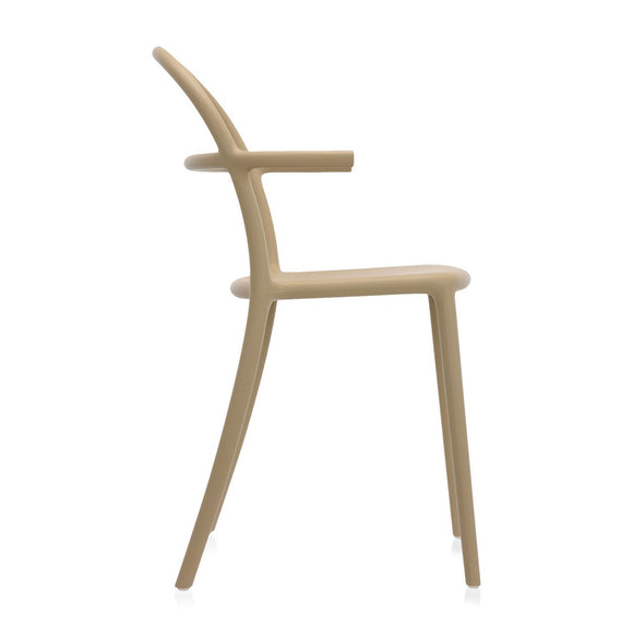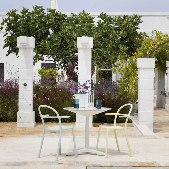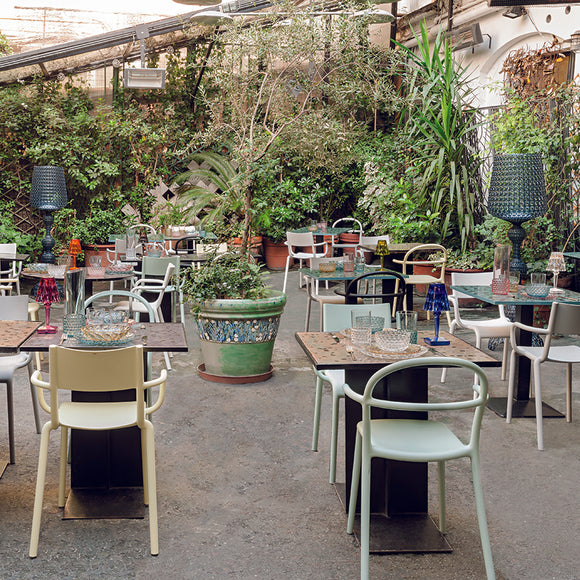 Designed in 2017 by Philippe Starck for Kartell, the Generic collection is anything but. Designed with bars, restaurants, and entertainment spaces in mind, the Generic C Chair offers a high seatback, generously proportioned armrests, and a functional designed. Able to be stacked six high, this chair is suitable for use both indoors and out, making it an ideal option for breakfast on the veranda or dinner for four under the stars.