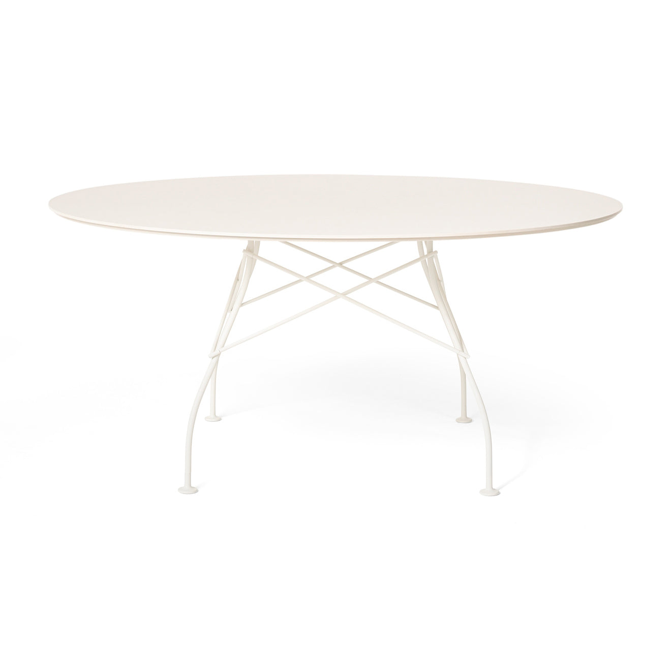 A family of tables ideal for the home and office. The light steel structure is made particular by the use of the cross element that joins the legs on each of the four sides, supporting the top.