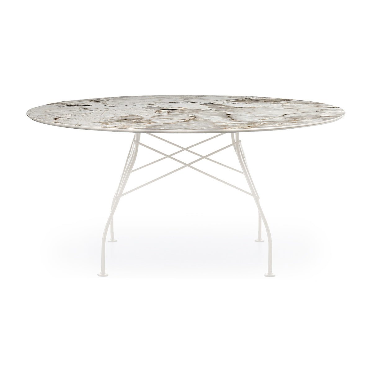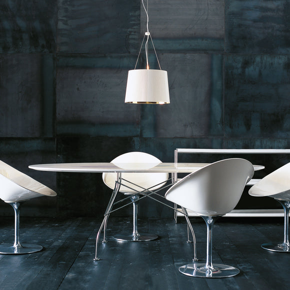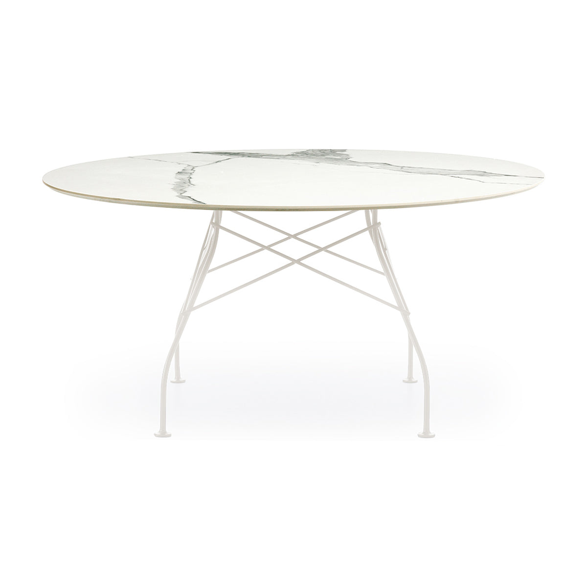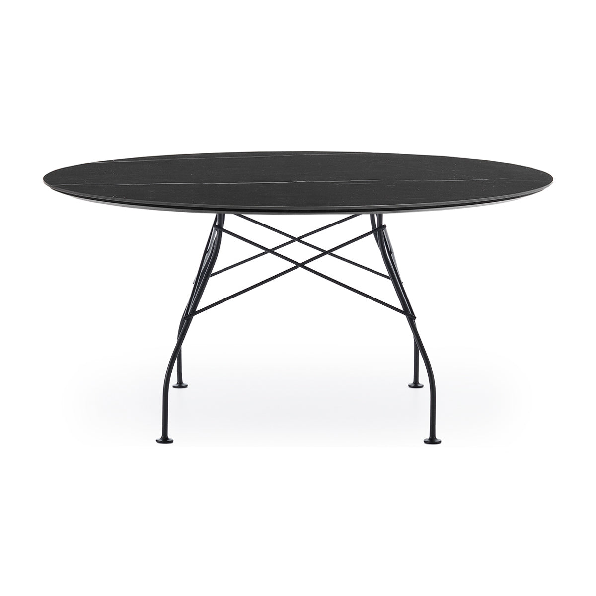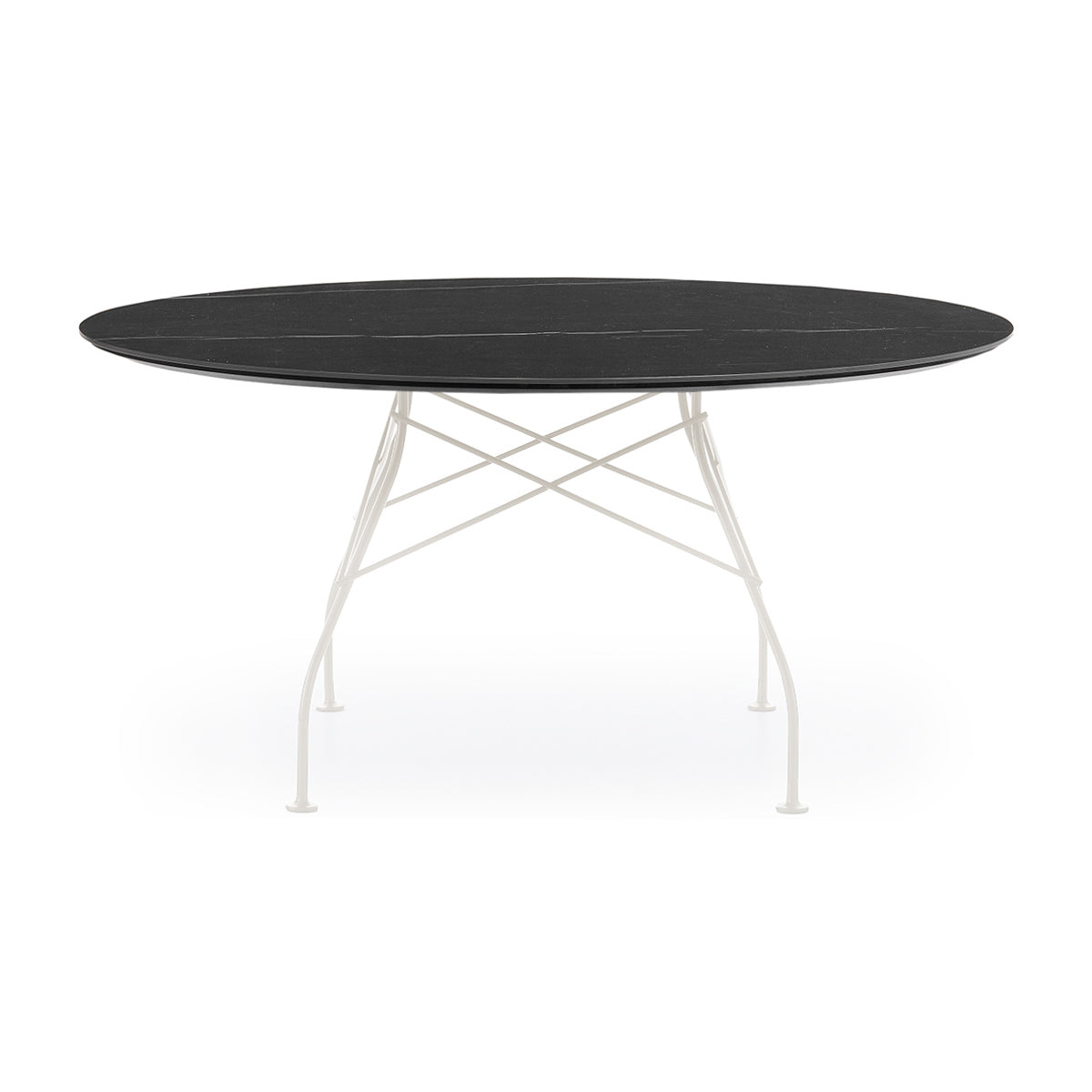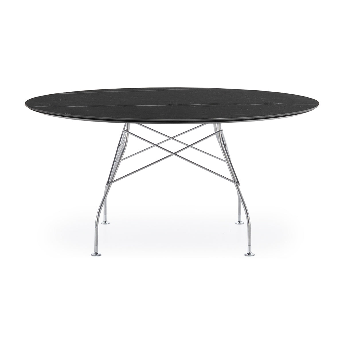 A family of tables ideal for the home and office. The light steel structure is made particular by the use of the cross element that joins the legs on each of the four sides, supporting the top.