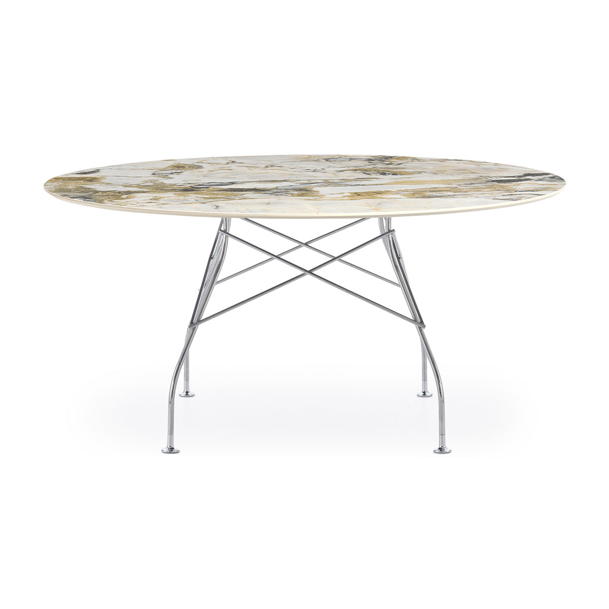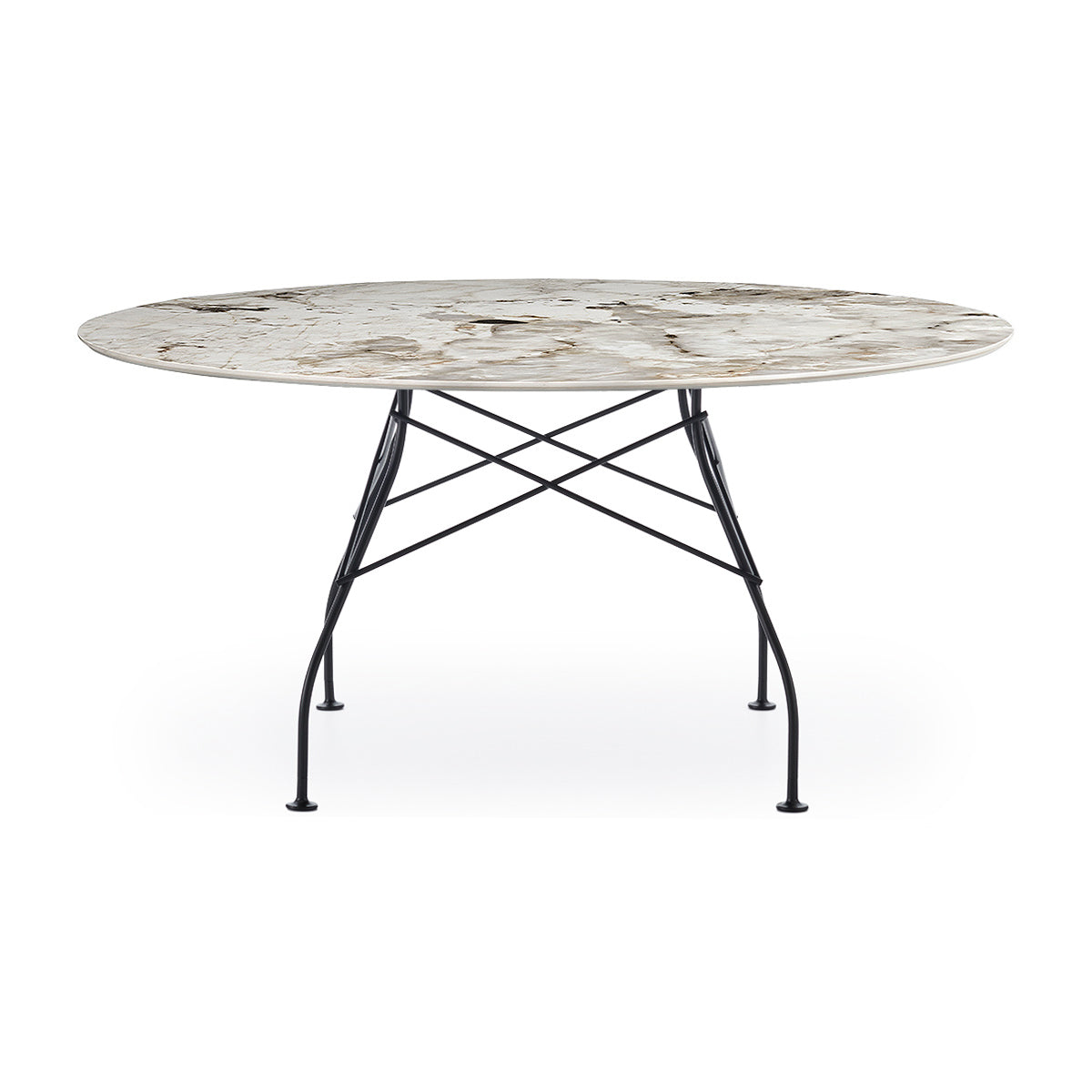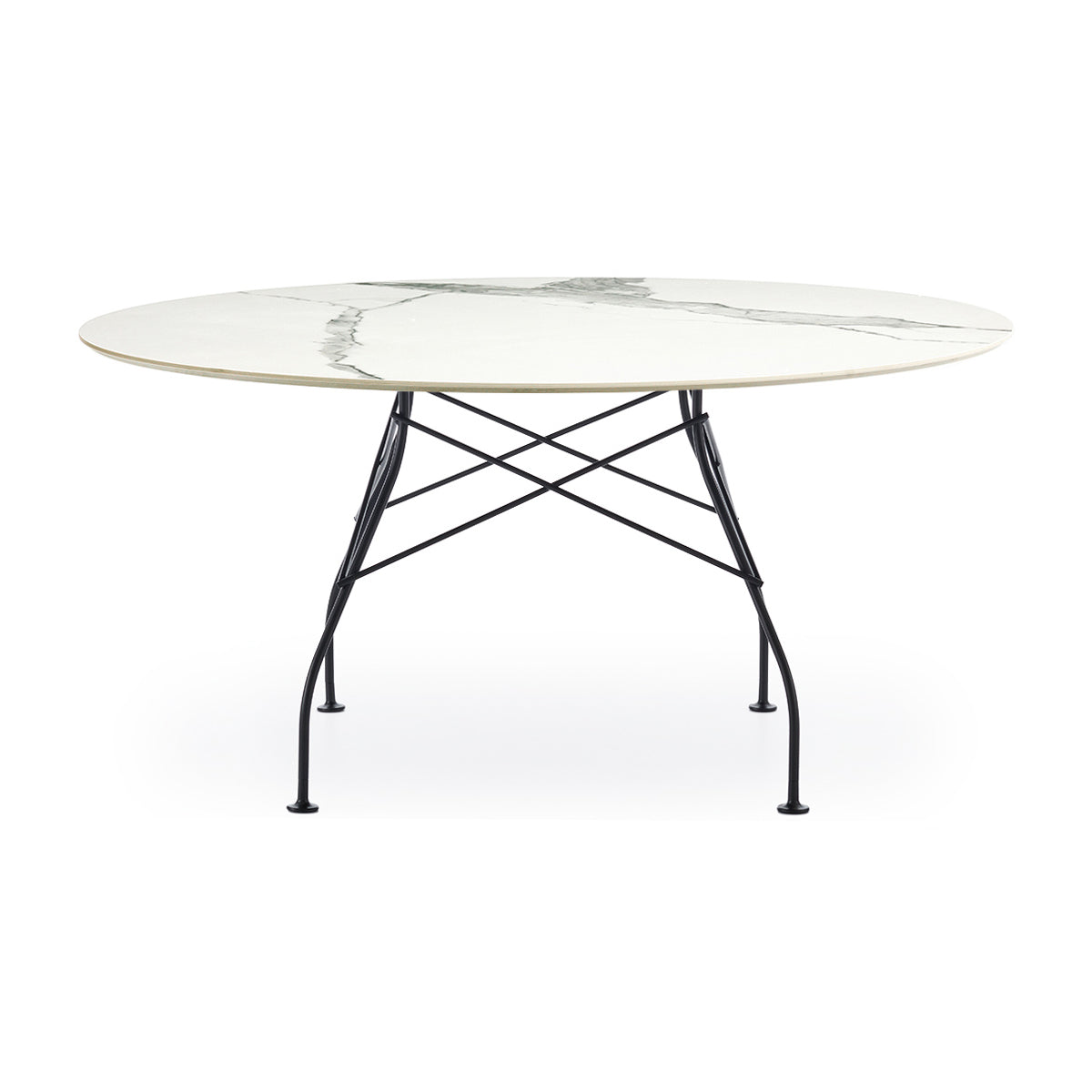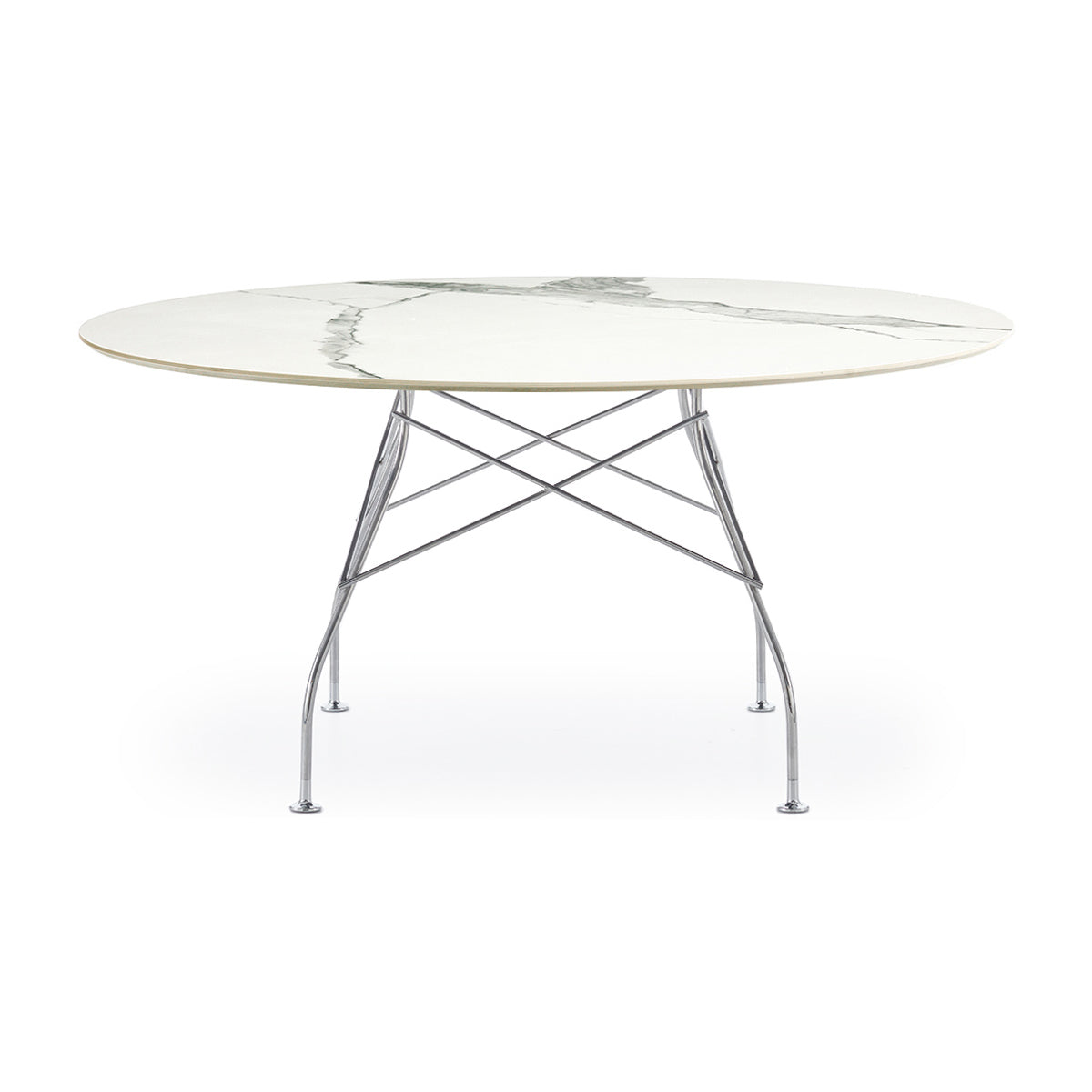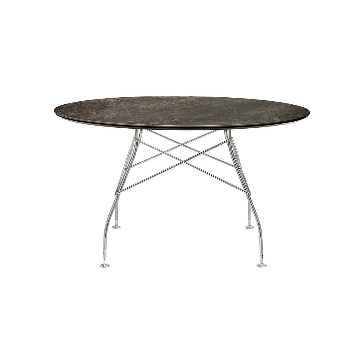 A family of tables ideal for the home and office. The light steel structure is made particular by the use of the cross element that joins the legs on each of the four sides, supporting the top.