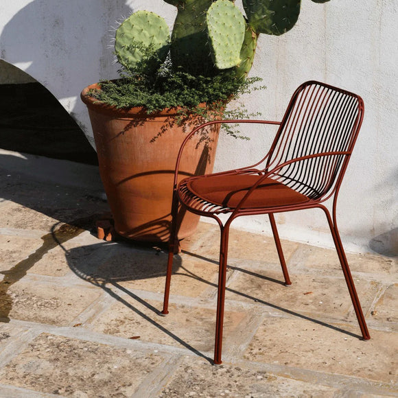Transform your outdoor space into a chic bistro with the exquisite Hiray Dining Armchair from Kartell. Crafted with a welded wire technique, this Italian-designed chair boasts a sleek framework that creates striking silhouettes. Its marine-grade, salt-fog tested steel construction ensures durability for all weather conditions. Elevate your dining experience with this sophisticated and resilient piece.