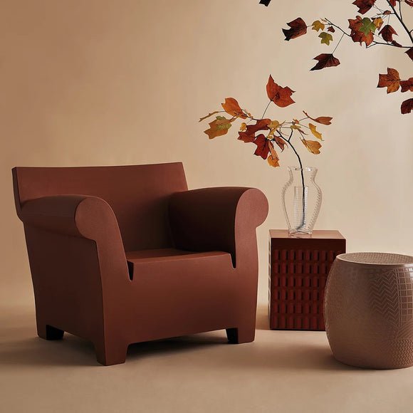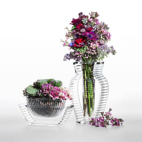 Texture, design, and function all meet in the I Shine vase designed by Eugeni Quitlet for Kartell. Crafted of batch-dyed PMMA, this vase it suitable for both indoor and outdoor use. Taking inspiration from the art-deco era, this vase features a geometric, yet elegant frame, perfect for holding fresh-picked roses or gerber daisies. Balance an entryway credenza with two of these filled with fragrant flowers or dot your dining room table with a simple bouquet to welcome guests to dinner.