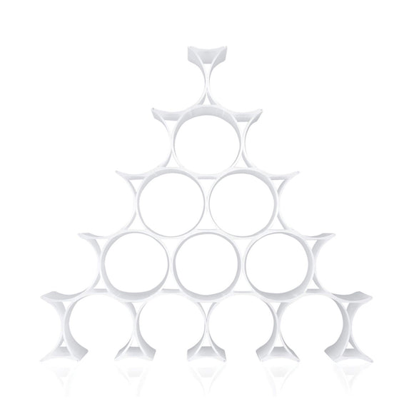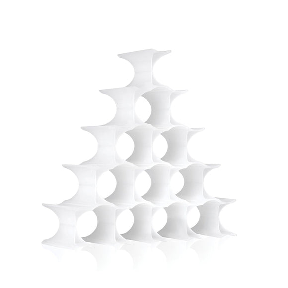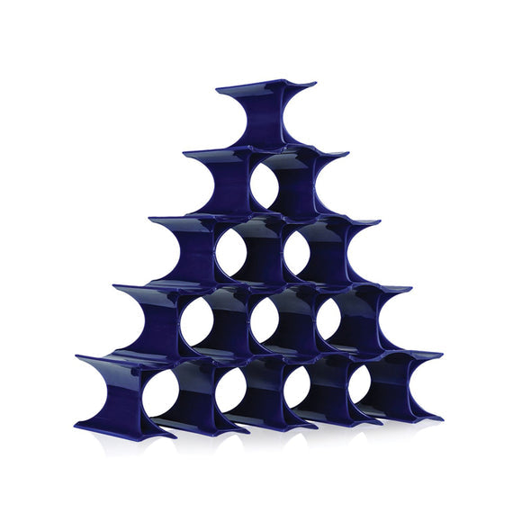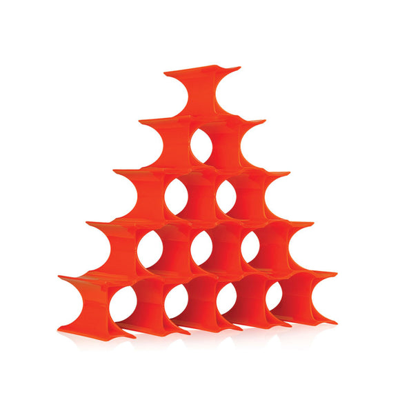 Infinity is a colorful and curvilinear, modular bottle-holder. The elements which form the bottle-holder can be fastened together to form an indefinite number of rings inside of which bottles may be stored. It is available in a practical 16-piece gift pack and may be freely composed in an endless interplay of connections. It is available in most colors: opaline, blue, yellow and orange.