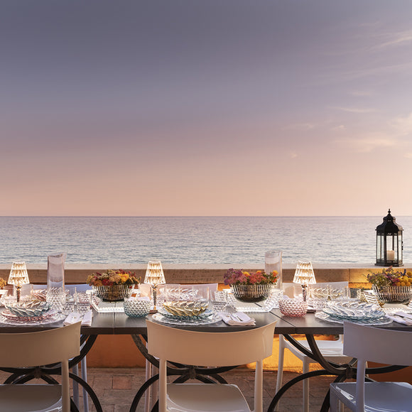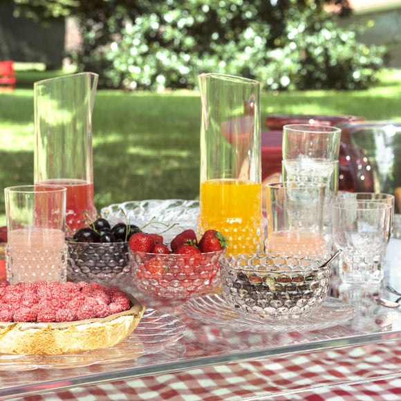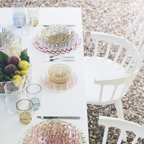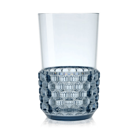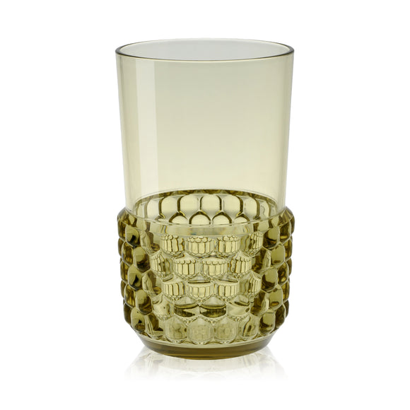 The Jellies Large Glass (Set of 4) designed by Patricia Urquiola for Kartell in 2014, is a revelation in serveware. Transparent and boldly colored, this glass is molded with a textured pattern ready to make a bold statement at any meal. The large size is particularly beneficial for smoothies, water, or an ice cold cocktail after a long day of work. Mix and match colors for a varied tablescape or stick with one hue to let the vibe shine through.